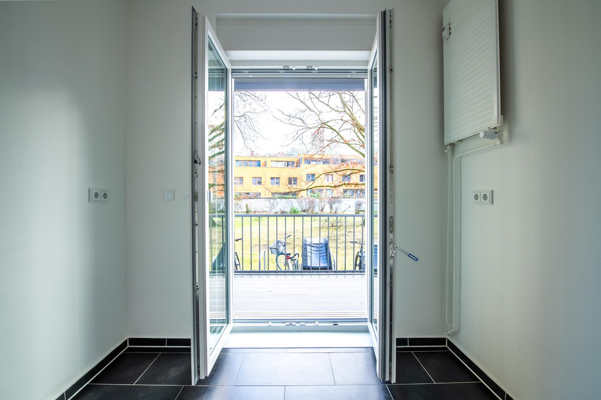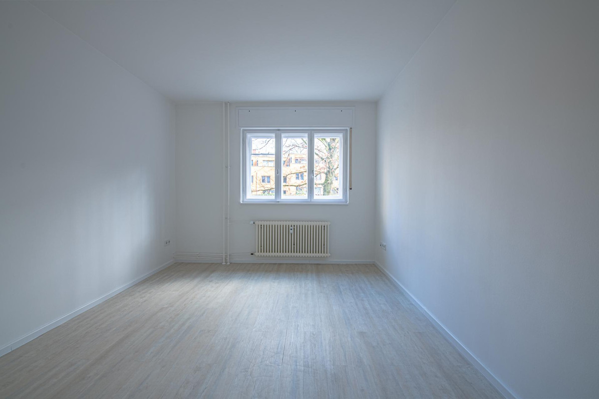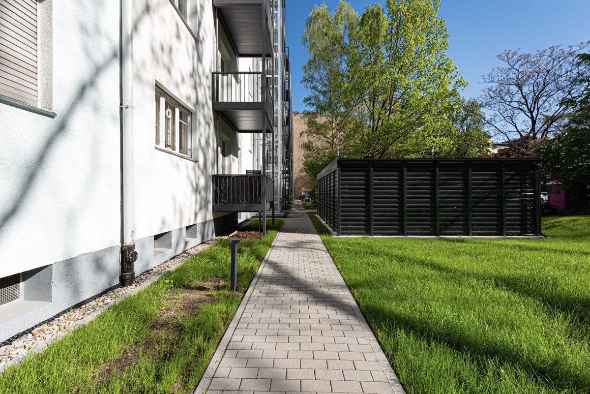 Das Schlafzimmer bietet Ihnen einen ruhigen Rückzugsort mit Blick auf den neugestalteten begrünten Garten-Innenhof. Hier können Sie in eine Oase der Entspannung eintauchen und erholsame Nächte verbringen.Die ausgerichteten bodentiefen Fenster mit Zugang zum Balkon zur Hofseite lassen sanftes Tageslicht herein und schaffen eine beruhigende Kulisse für einen erholsamen Schlaf.