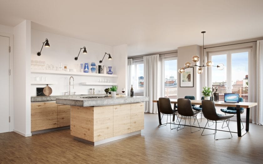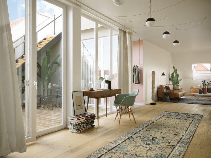 Eine Dachterrasse ist das „Must-have“ einer gut geplanten Penthouse-Wohnung. Manchmal sind umlaufende Terrassen oder zusätzliche Rooftop-Flächen möglich. So erlebt man die Freiheit mitten in der Stadt und meist mit atemberaubenden Panoramablicken über die Dächer der Nachbarn. Ein herausragendes Penthouse verknüpft Außen- und Innenraum mit großen Fensterflächen und optimal geplanten Grundrissen, damit man das Freiheitsgefühl auch in den Wohnräumen spüren kann. Das 3-Zimmer-Penthouse im COSYYARD in Berlin-Prenzlauer Berg ist unter diesen Gesichtspunkten ein nahezu perfekt geplantes Penthouse.
