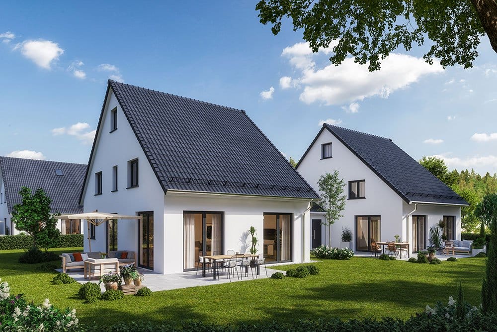 - Variabel! Satteldächer bieten viele Gestaltungsmöglichkeiten durch Neigungswinkel, Gauben, Dachfenster, Giebelfenster, Vordach, dritter Giebel etc.