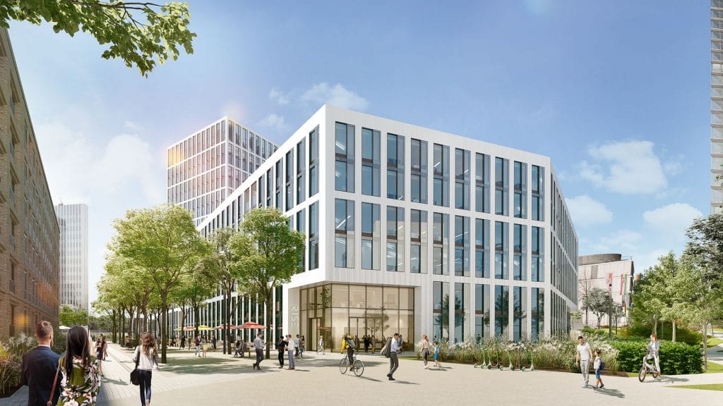 Ende 2020 wird mit den Bauarbeiten für das gesamte Neubau-Quartier in Düsseldorf-Unterbilk begonnen. Während das Wohngebiet bis Ende 2022 bezugsfertig sein soll, ist die Fertigstellung für die Bürokomplexe für Mitte 2023 avisiert.