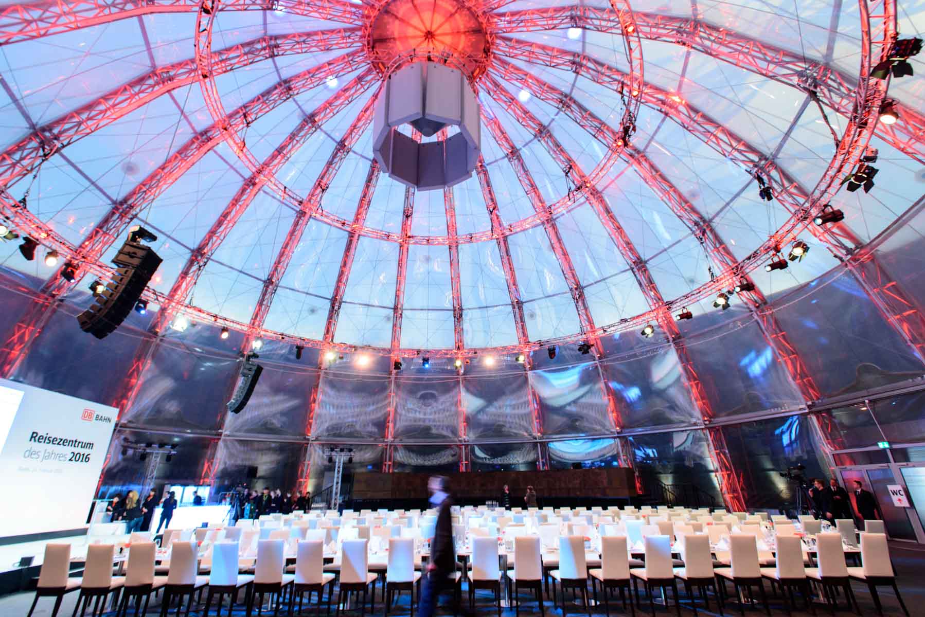 Unter der Kuppel des Gasometers finden zum Beispiel Konferenzen, Galadinners und Events statt.
