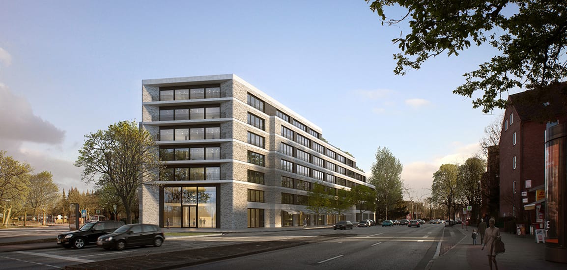 Geplant haben Hanseaten für Hanseaten: Das Hamburger Büro KPW Papay Warncke und Partner gewann den 1. Preis beim städtebaulichen Wettbewerb „Moosrosenweg“. So entstehen entlang der Marginale Backsteingebäude in gemütlicher und moderner Optik. In der Stadt ist das Architekturbüro kein unbekanntes, plant es doch an vielen Stellen: den Umbau historischer Speichergebäude am Sandtorkai und Neubauten im Hamburger Kontorhausviertel. Und vieles mehr.