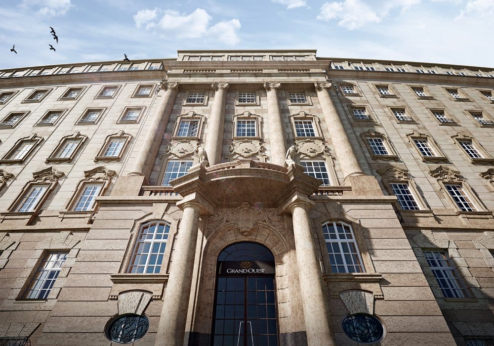 Ein weiteres Beispiel für eine neobarocke Fassade ist das Bauprojekt „GRAND OUEST“, in der unmittelbaren Nachbarschaft. „GRAND OUEST“ entsteht aus der ehemaligen Oberpostdirektion und dem Senckenberg-Carré ebenfalls an der Ludwig-Erhard-Anlage.