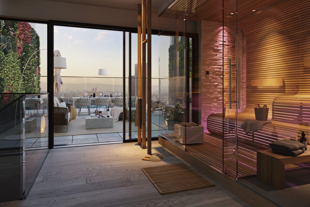 Cornelia Mattheußer: Wie in einem Spitzenhotel verfügt der EDEN Tower über eine begrünte Lobby mit einem Concierge-Service, der die großen und kleinen Wünsche des täglichen Lebens erfüllt. Außerdem steht den Bewohnern ein privater Fitnessbereich und eine Rooftop-Terrasse zur Verfügung.