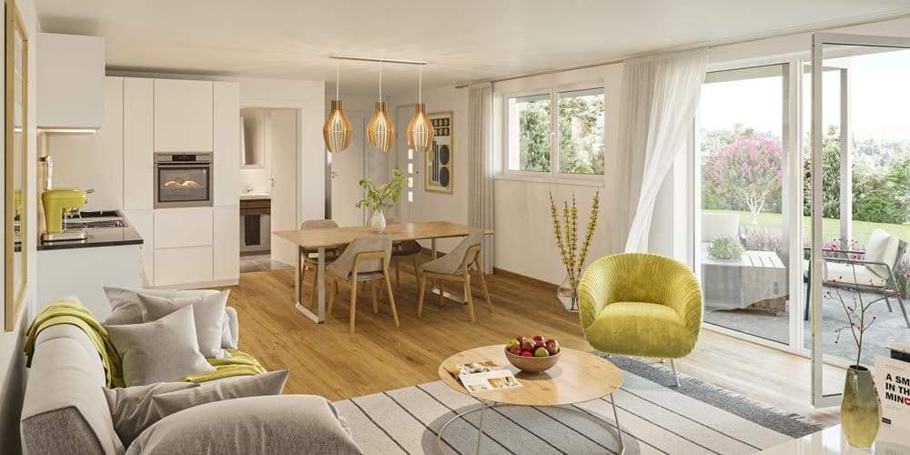 Die Bewohner des Hauses haben ein optimales Raumklima und eine hohe Wohnqualität, da Holz die Regulierung der Raumfeuchte angenehm beeinflusst.