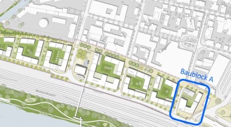 Während die Wohnungen der Baublöcke B („Béla“ mit 132 Wohnungen), C („Citadis“ mit 128 Wohnungen) und D („Desiro“ mit 167 Wohnungen) nach RVI-Angaben bereits verkauft sind, sind jetzt weitere Neubau-Wohnungen im Baublock A geplant.