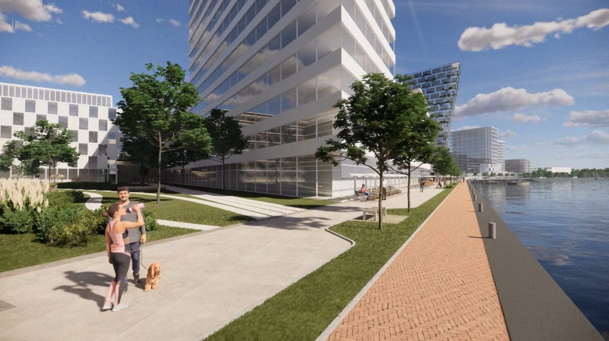 Die Entwurfssimulation für das Behrens-Ufer zeigt den Uferweg, der zum Flanieren einlädt: