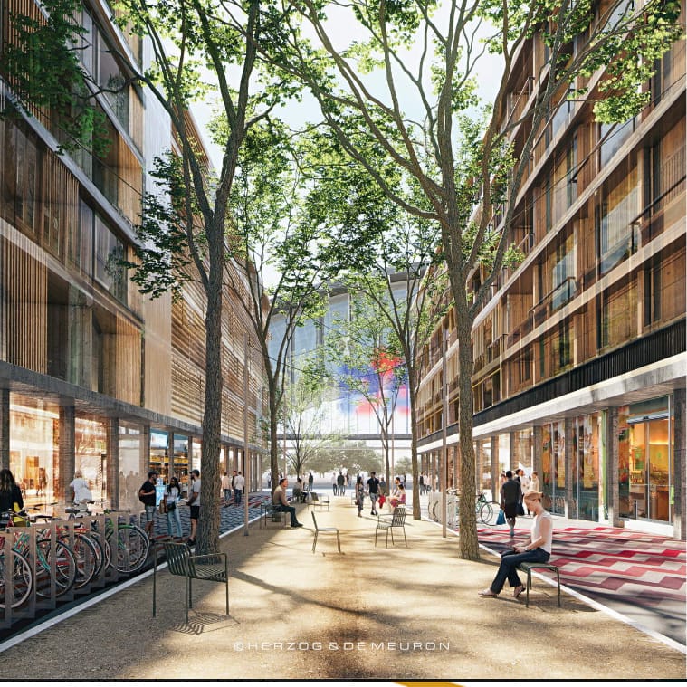 Mit der Paketposthalle im „Zentrum“ entstehen nach den bisherigen Planungen weitere sechsstöckige Gebäude – für Wohnungen und gewerbliche Flächen und Gastronomie. Und Gassen, die die Gebäude miteinander verbinden. Alles in allem geben dann rund 1000 Wohnungen neuen Lebensraum, Büros rund 3000 neue Arbeitsplätze. All das ist eingebunden in kleine Straßen, die autofrei gehalten werden. Geparkt und angeliefert wird unter der Erde.