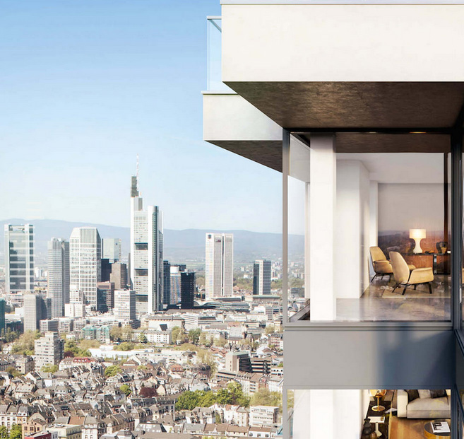 Die Ausstattung ist elegant und schlicht. Edle Hölzer und Natursteine auf dem Boden, Design-Sanitärobjekte von Markenherstellern in den Masterbädern. Alle Wohnungen erhalten mindestens einen Wintergarten und einen Balkon. Schöne Aussichten auf die Skyline von Frankfurt sind garantiert. Ein Concierge-Service in eleganter Lobby darf wie bei vergleichbaren Projekten in der Stadt nicht fehlen.