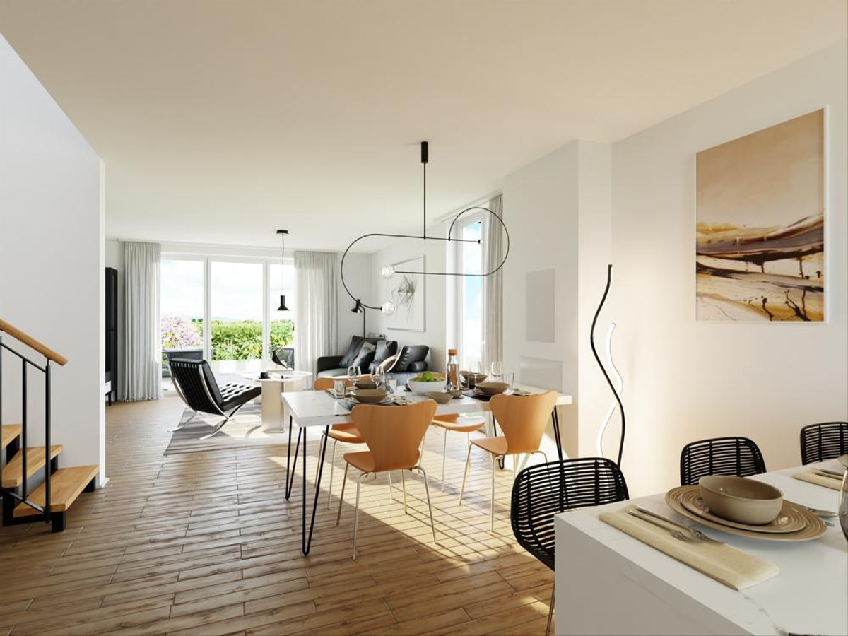 Im Erdgeschoss erwartet Sie ein offener Wohn- und Essbereich mit Küche sowie ein Gäste-WC und der direkte Zugang zu Terrasse und Garten. Das Obergeschoss bietet zwei Schlafzimmer, ein helles Tageslichtbad und einen praktischen Hauswirtschaftsraum. Im Dachgeschoss befindet sich ein großzügiges Arbeits- oder Gästezimmer mit Zugang zur sonnigen Dachterrasse.