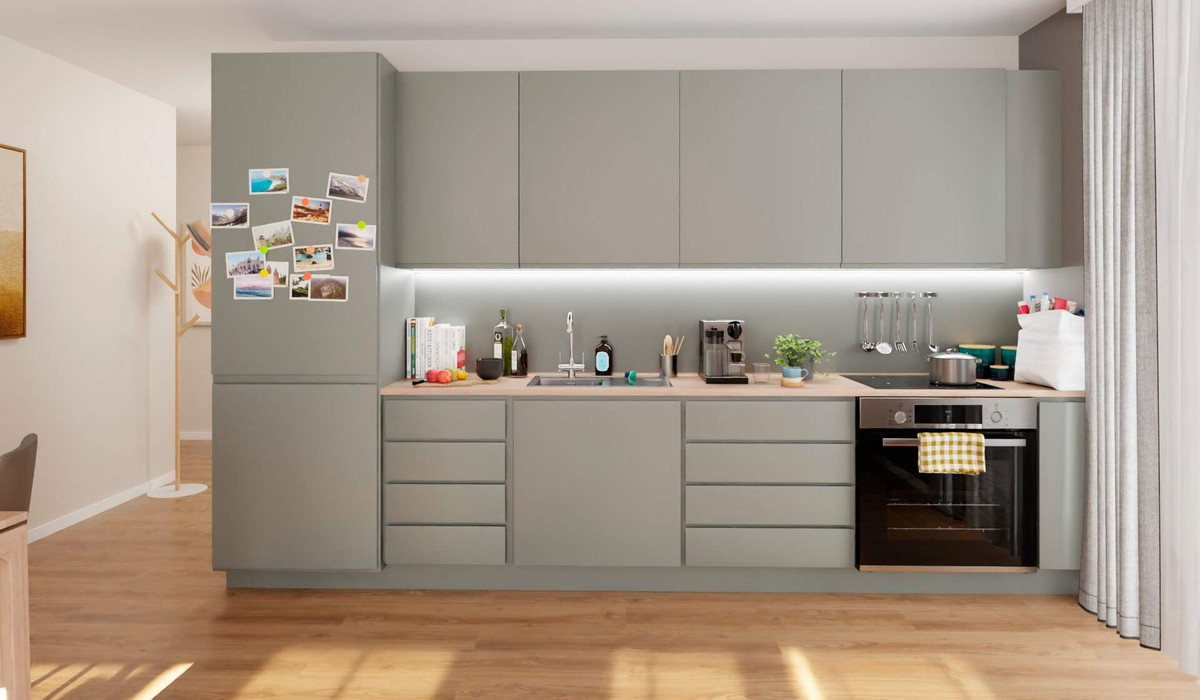 Treten Sie ein in Ihr neues Zuhause und erleben Sie den offenen Wohn- und Küchenbereich, der zum gemeinsamen Verweilen einlädt. Der Küchenbereich bietet ausreichend Platz für kulinarische Abenteuer. Der angrenzende Wohnbereich eignet sich ideal für entspannte Stunden mit der Familie. Die Loggia erweitert den Raum nach draußen und bietet einen schönen Ort für Abende an der frischen Luft.
