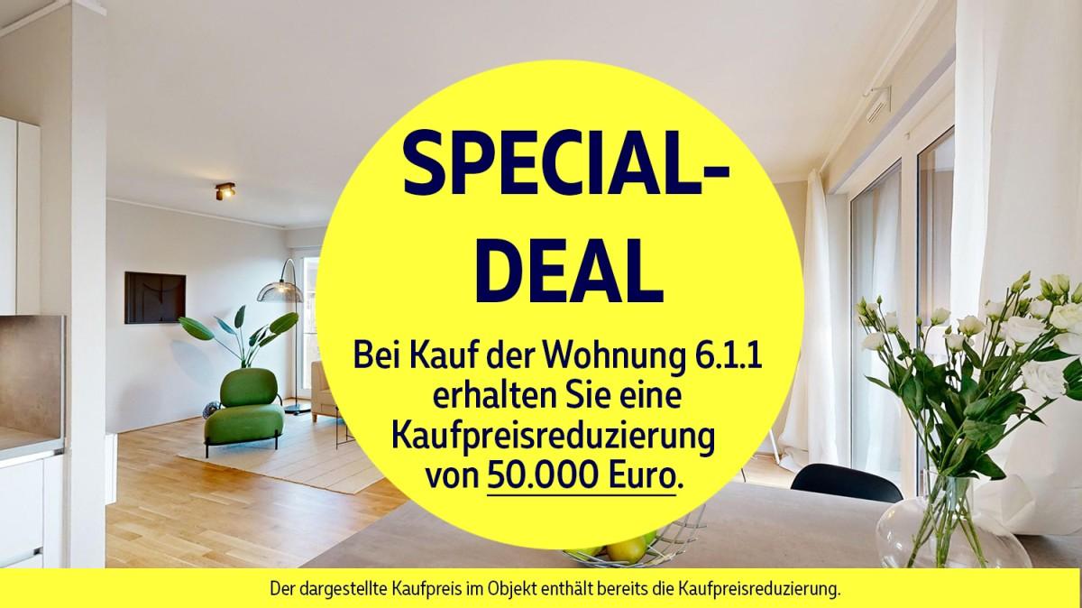 - Bei Kauf der Wohnungen 3.1.1 und 6.1.1 erhalten Sie eine Kaufpreisreduzierung von 50.000 Euro.
