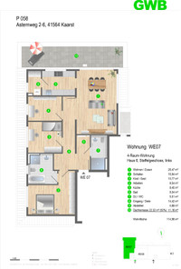 - Das Gebäude erhält für den Betrieb der Fußbodenheizung eine zentrale, moderne und kostensparende Wärmeerzeugung sowie dezentrale Wohnungsstationen zur Warmwasseraufbereitung in den Abstellräumen der jeweiligen Wohnungen. Ausführung gemäß dem Gebäudeenergiegesetz GEG 2024. In Wohnräumen Heizungsrohre unter Putz oder Estrich. Zusätzlich wird auf dem Dach eine Photovoltaikanlage errichtet, die die Energieeffizienz der Wärmeerzeugung optimiert.