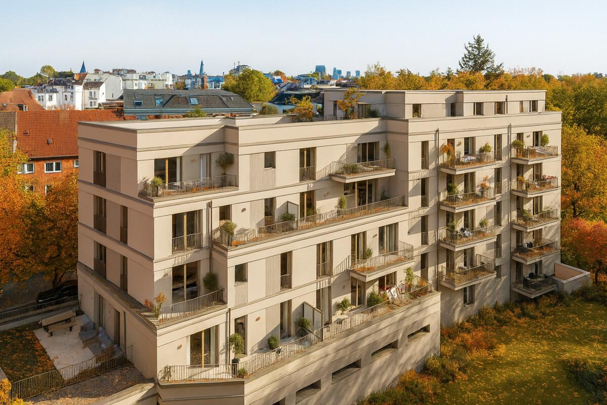 Das Äußere von BELLA begeistert durch ein puristisches Design und klare Linien, die dem Gebäude eine zeitlose Eleganz verleihen. Die helle Fassade fügt sich harmonisch in die Umgebung ein und sorgt für eine ästhetische Gesamtoptik, die sofort ins Auge fällt. BELLA steht für stilvolles Wohnen auf höchstem Niveau – ein wahrer Blickfang im schönen Eimsbüttel.