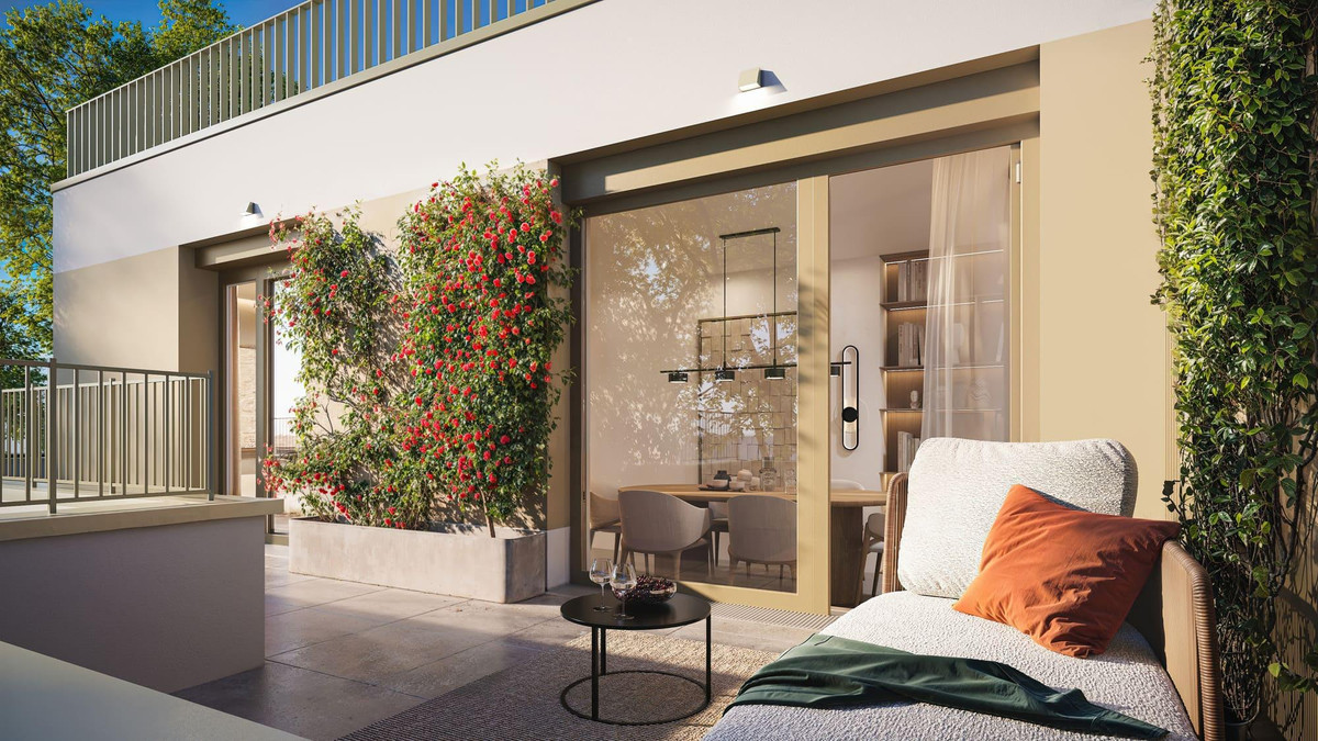 - Erdgeschosswohnungen mit Terrasse und Garten