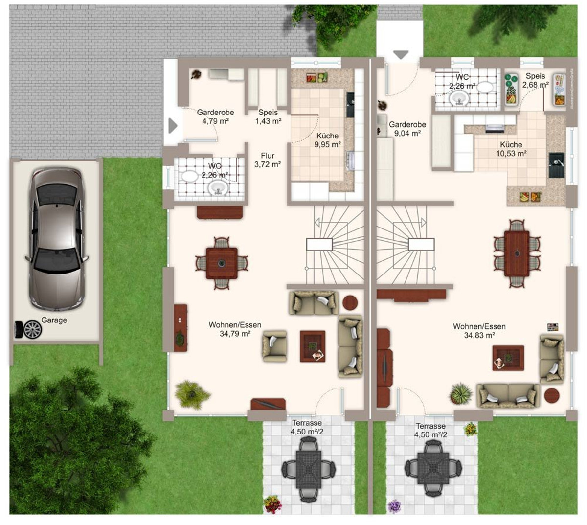 Südterrasse mit umlaufendem Garten