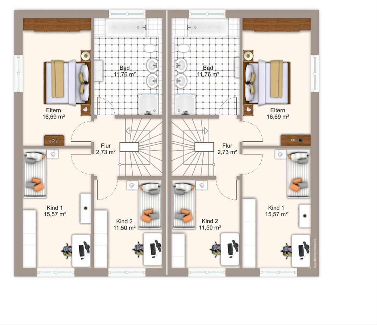 - Wohnflächen auf Einfamilienhausniveau
