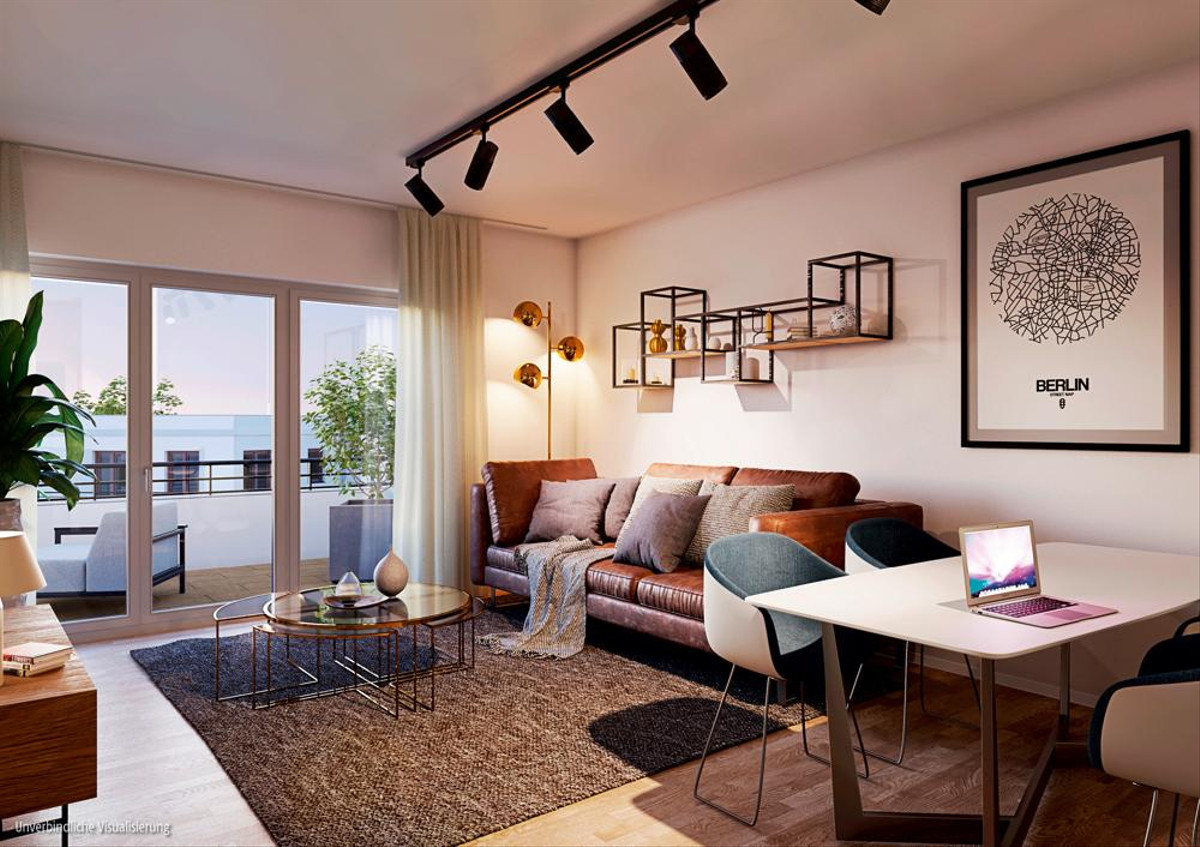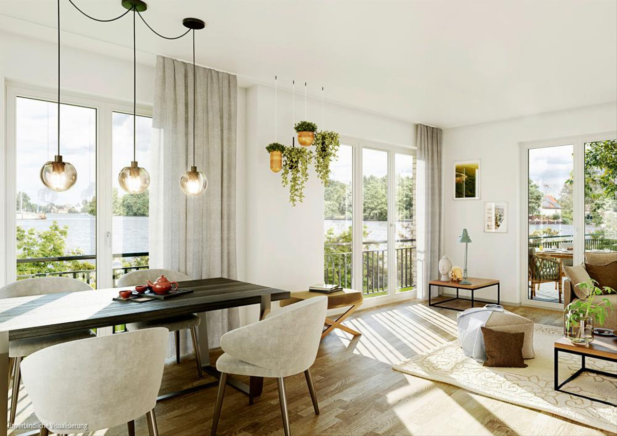 Die weitläufigen, offenen und dennoch ruhigen Außenanlagen mit Hofcharakter sind abwechslungsreich begrünt und bieten Ihnen verschiedene Sitz-und Rückzugsmöglichkeiten auch mit Blick auf die Dahme. Für die Kleinen gibt es einen Spielplatz und eine Wiese zum Spielen. Je nach Gebäude und Etage verfügen die Wohnungen über einen Balkon, eine Terrasse oder einen privaten Garten - die meisten zum Wasser ausgerichtet. Für einen entspannten Start in den Tag und Weitblick im Alltag