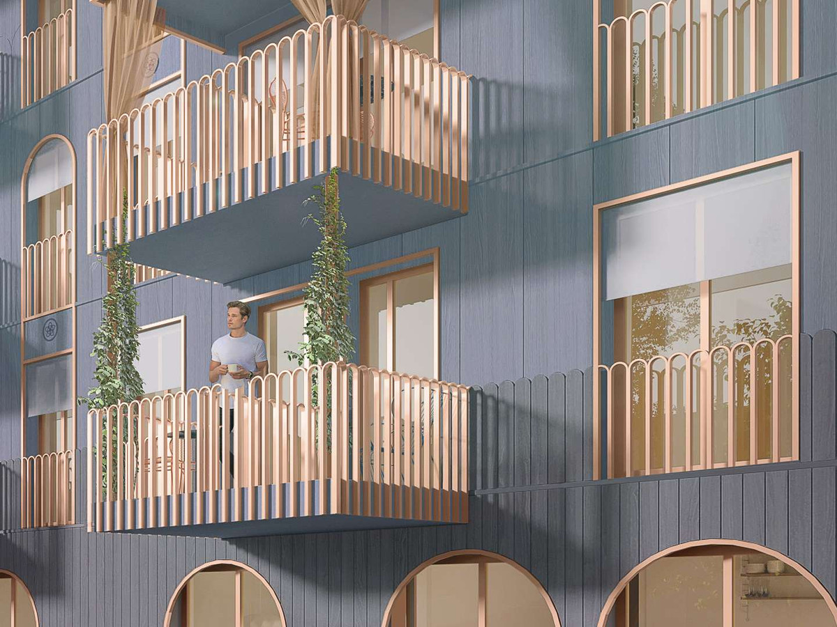 + blaues Holzhaus mit feinen Details in Kupfer: das blaue Wunder Münchens