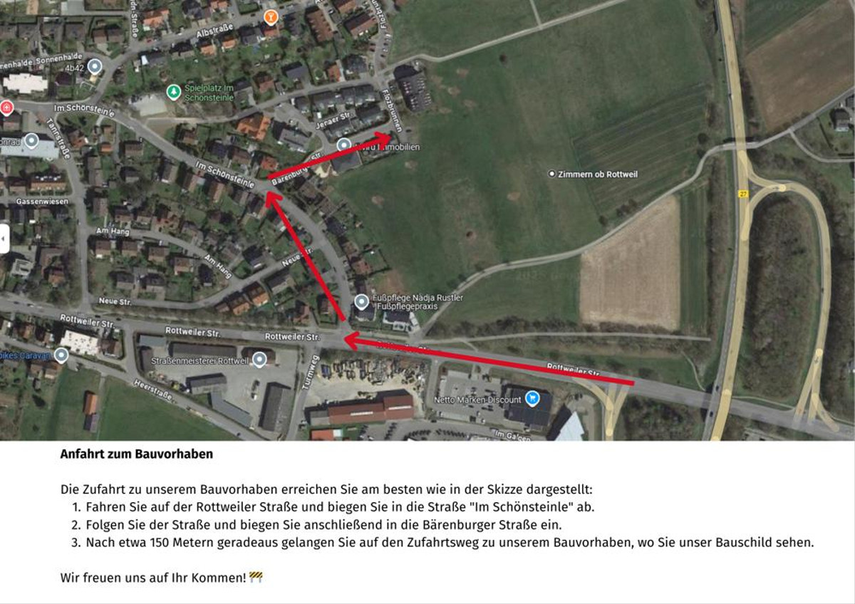 Anfahrt zum Bauvorhaben | Die Zufahrt zu unserem Bauvorhaben erreichen Sie am besten wie in der Skizze in den Bildern dargestellt: