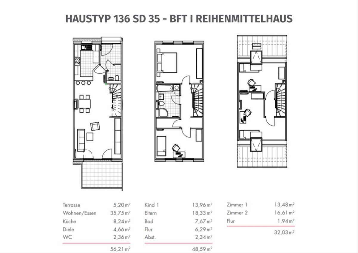 - Erdgeschoss: Offener Wohn-, Ess- und Kochbereich mit Zugang zur Terrasse und eigenem Garten – ideal für gemeinsame Familienzeit.