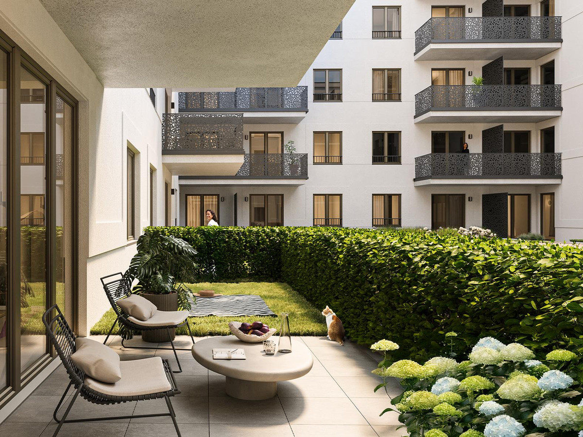 Treten Sie ein in die Ruhe. Unser neues Projekt verfügt über drei üppig begrünte Innenhöfe, die als ruhige Stadtfluchten konzipiert sind. Hier trifft Nachhaltigkeit auf Gelassenheit und bietet Ihnen einen friedlichen Rückzugsort, um sich mit der Natur zu verbinden – nur wenige Schritte von Ihrer Haustür entfernt. Entdecken Sie Ihre tägliche Dosis Ruhe inmitten der Energie der Stadt. -