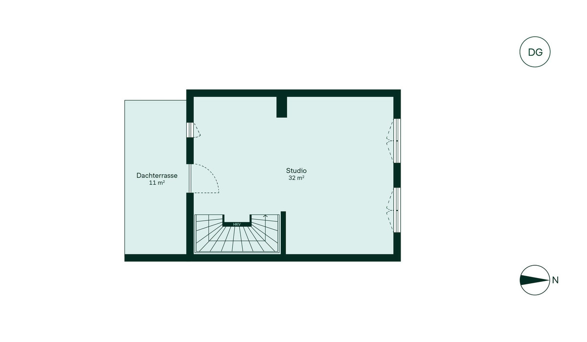 zusätzliches Staffelgeschoss mit Süd-Dachterrasse und Studio