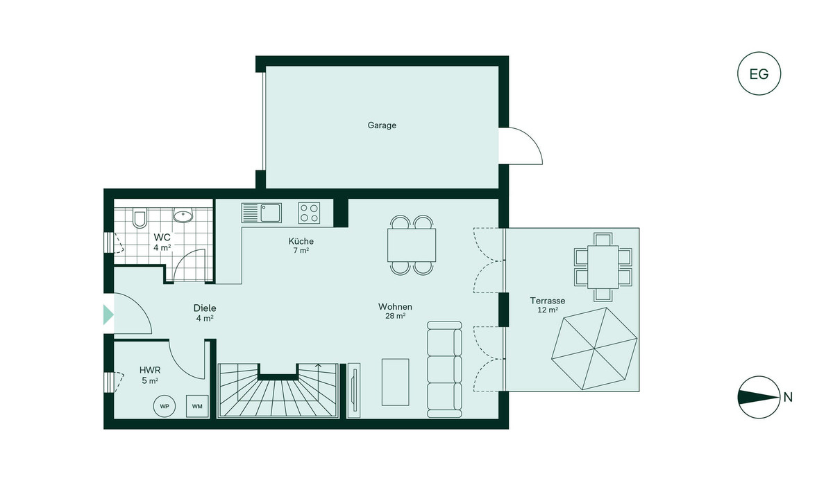 Diese moderne Doppelhaushälfte bietet Familien ein durchdachtes Zuhause in ruhiger Lage mit Blick ins Grüne. Im Erdgeschoss verbindet sich der helle Wohn- und Essbereich mit der offen gestalteten Küche – ideal für gemeinsames Kochen und Zusammensein. Die Terrasse führt direkt in den Garten. Ein Gäste-WC und ein Hauswirtschaftsraum ergänzen das Erdgeschoss funktional. Im Obergeschoss befinden sich zwei Schlafzimmer, ein weiteres Zimmer sowie ein Tageslichtbad mit Dusche. Ein echtes Highlight: das Staffelgeschoss mit großzügigem Studio und sonniger Dachterrasse in Südausrichtung – ideal als Spielbereich, Rückzugsort oder Homeoffice. Eine Garage am Haus und ein zusätzlicher Außenstellplatz bieten praktischen Komfort. Das Haus entspricht der Effizienzhaus-Stufe 55 und erreicht die Energieklasse A+ – nachhaltig gebaut für moderne Familien.