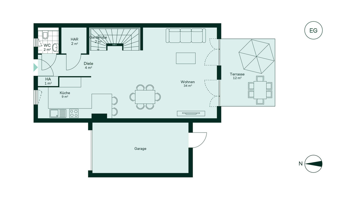 Dieses moderne Reihenehaus überzeugt mit viel Platz für das Familienleben. Im Erdgeschoss erwartet Sie ein heller Wohn- und Essbereich mit direktem Zugang zur nach Süden ausgerichteten Terrasse – ein schöner Ort für gemeinsame Mahlzeiten im Freien. Die offene Küche bringt alle zusammen, ob beim Kochen, Backen oder Hausaufgaben machen. Ein Gäste-WC, ein Hauswirtschaftsraum und ein separater Abstellbereich ergänzen das Erdgeschoss funktional. Im Obergeschoss finden sich drei gut geschnittene Zimmer sowie ein Tageslichtbad mit Dusche und Handtuchheizkörper – ideal für den entspannten Start in den Tag. Ihr Auto parken Sie wettergeschützt in der Garage, ein zusätzlicher Stellplatz steht ebenfalls zur Verfügung.
