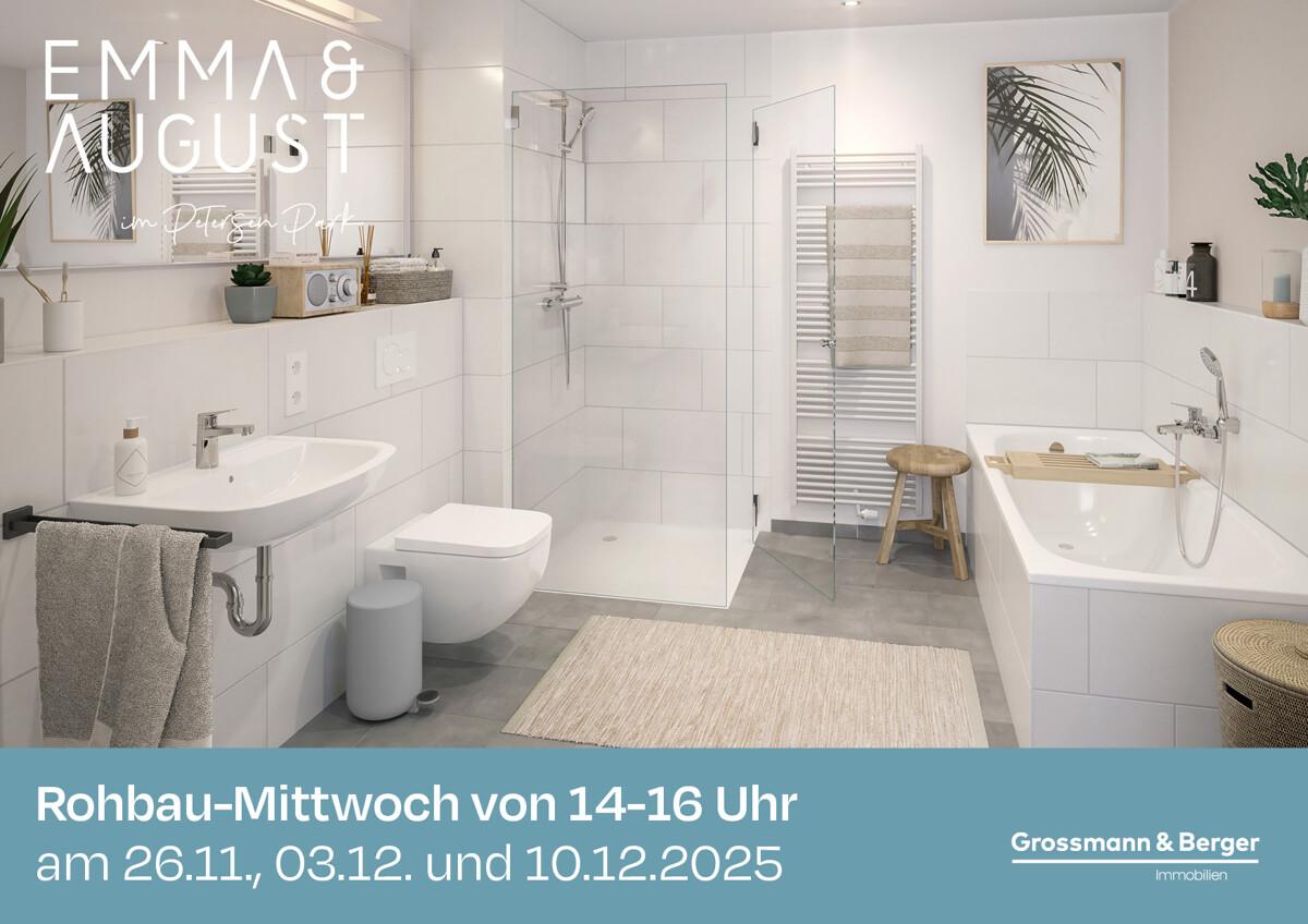 Jede Wohnung verfügt über einen Außenbereich in Form eines Balkons, Garten oder einer Dachterrasse sowie einen separaten Kellerraum. Tiefgaragenstellplätze mit Vorrüstung einer E-Ladestation können ebenfalls erworben werden. Mit der geplanten Fertigstellung bis Sommer 2026 bietet das Neubauprojekt Emma & August modernes und hochwertiges Wohnen im Petersen Park.