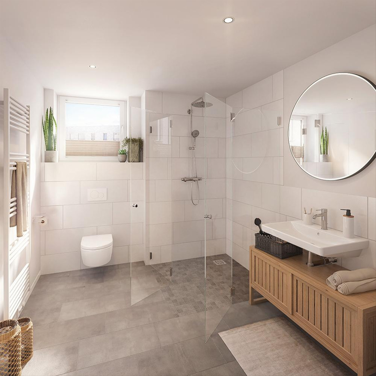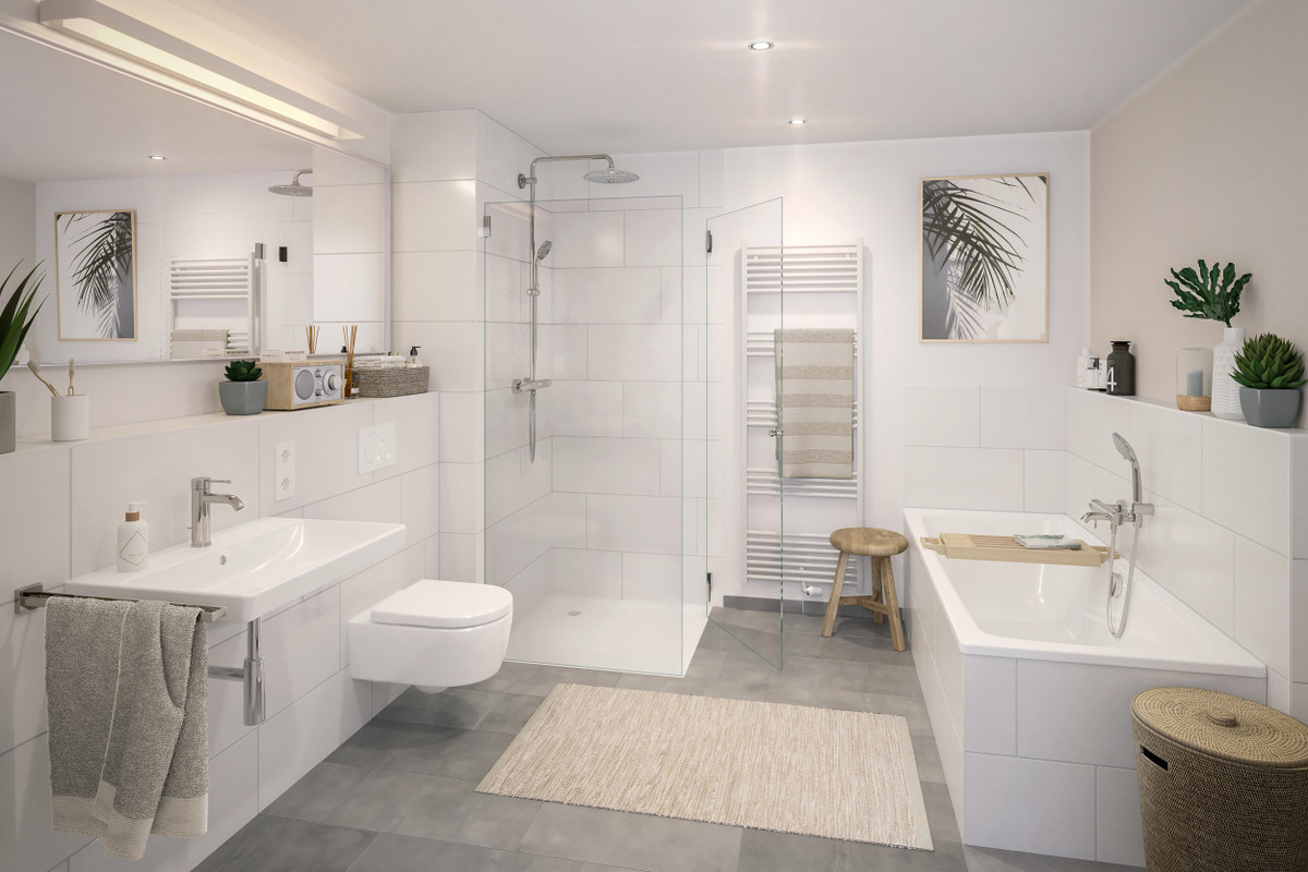 Die Ausstattung der Eigentumswohnungen von EMMA & AUGUST steht für zeitlose Eleganz. Genießen Sie lichtdurchflutete Räume, Fußbodenheizung und Eichenholz-Parkettböden. Auch die Bäder überzeugen: So kommen Marken-Bodenfliesen und Sanitärprodukte namhafter Hersteller zum Einsatz, die Langlebigkeit mit moderner Ästhetik verbinden.