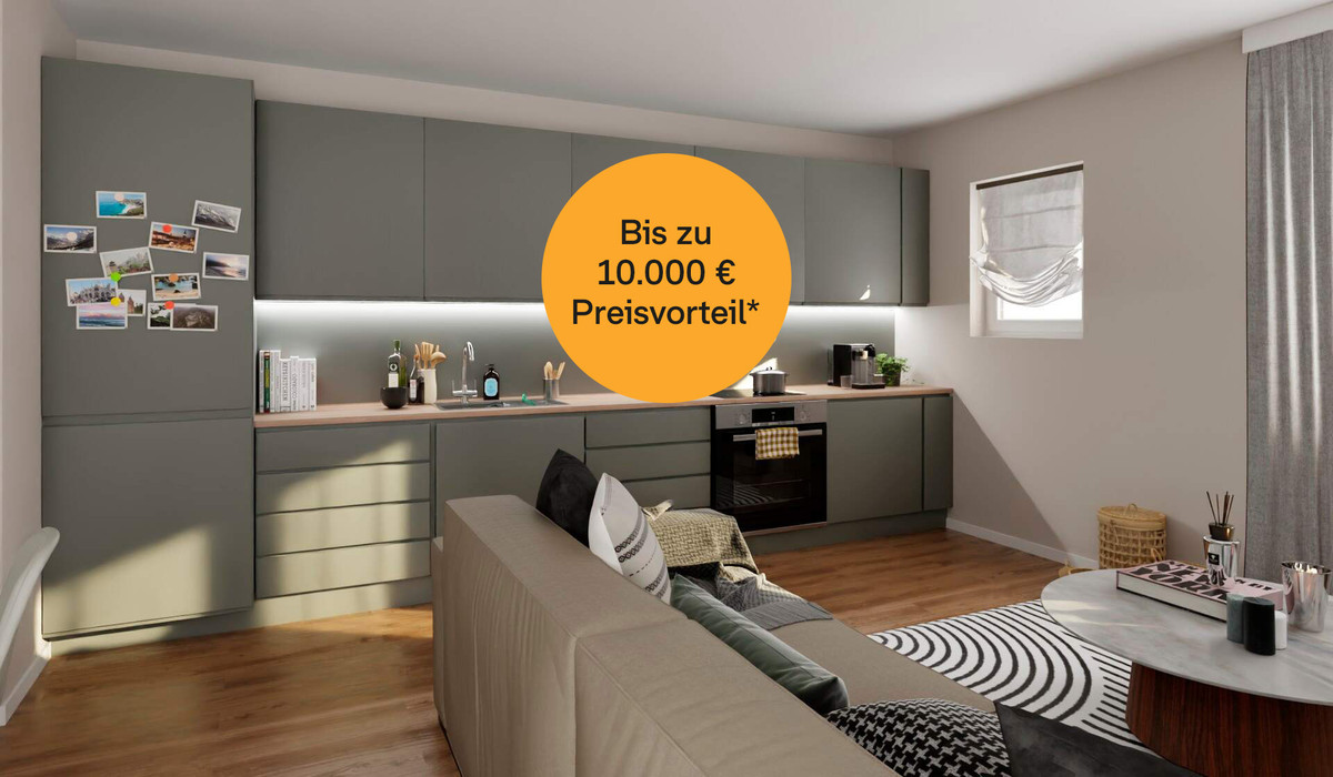 Nutzen Sie die Gelegenheit und sparen Sie bis zu 10.000 Euro beim Kauf Ihrer neuen Eigentumswohnung. Wir beraten Sie persönlich zu den passenden Optionen und unterstützen Sie bei Ihrer Entscheidung. *Gültig bei Beurkundung im Zeitraum vom 02.10.2025 bis 19.12.2025.
