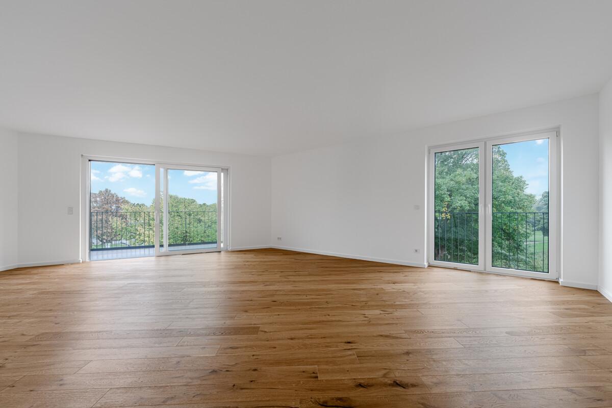 Schon beim Betreten einer dieser exklusiven Wohnungen fällt das hochwertige Echtholzparkett ins Auge. Es verleiht jedem Raum eine warme, luxuriöse Atmosphäre und unterstreicht den anspruchsvollen Stil des gesamten Wohnkonzepts.