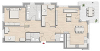 Die Wohnung ist mit einem Multimedia-Verteilerkasten sowie einer großen Zahl Elektroschaltern und Steckdosen ausgestattet. Telefonanschlüsse und TV-Kabel nach Wahl. In jeder Wohnung wird im Hauswirtschaftsraum eine Abluftwärmepumpe für die Warmwasserbereitung zum Heizen und zum Lüften installiert. Auf dem Dach wird eine Photovoltaik-Anlage zur Stromerzeugung installiert.