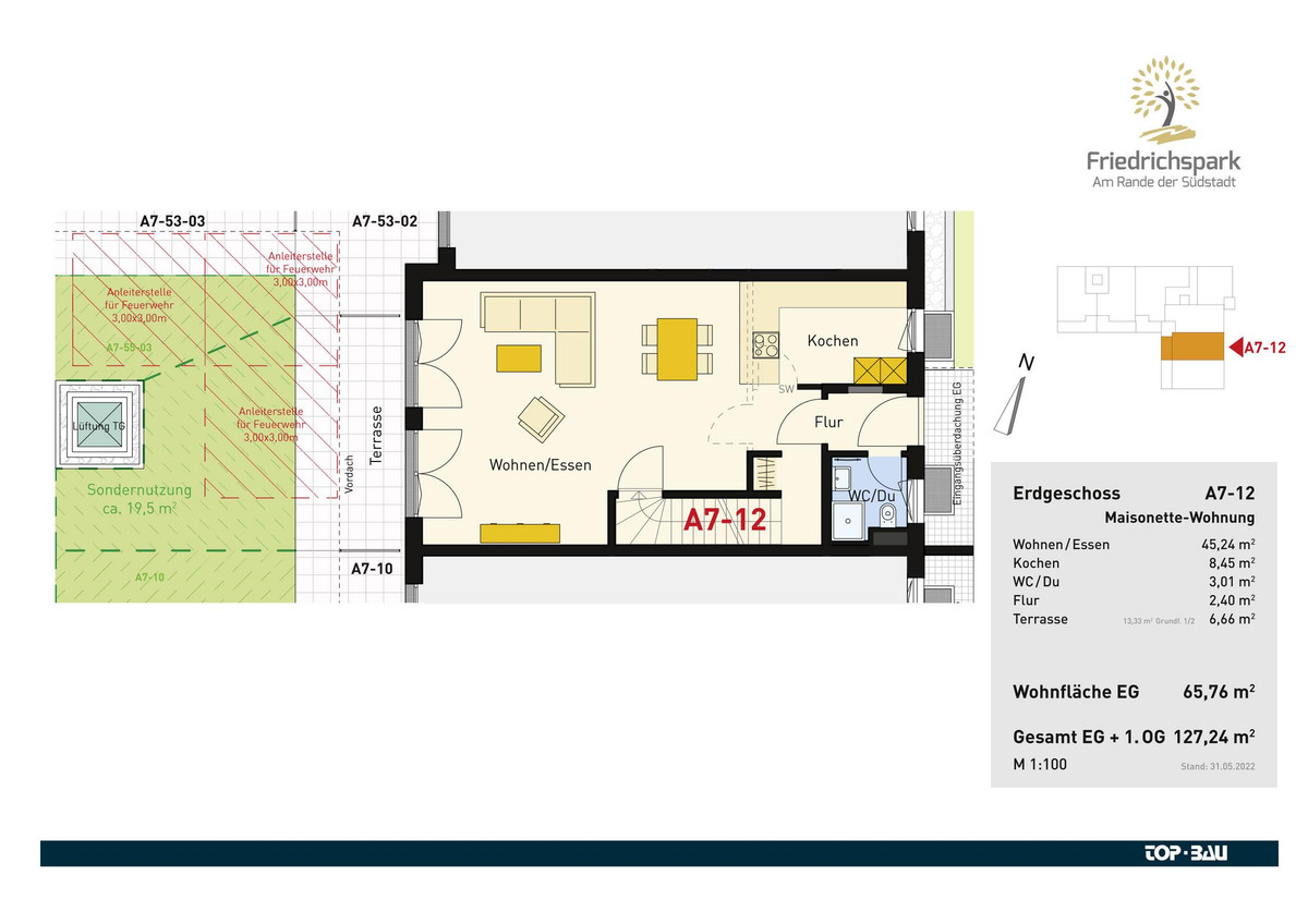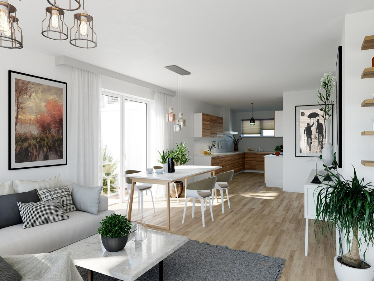 Diese elegante 4-Zimmer-Maisonette-Wohnung ist stufenlos zugänglich und verfügt über einen eigenen Hauseingang (auch über die Tiefgarage), eine sonnige Terrasse mit rund 20 m² Privatgarten, einen Südwest-Balkon mit Blick is Grüne, eine offene Wohnküche (auch geschlossen möglich) sowie über zwei vollwertige Tageslichtbäder.