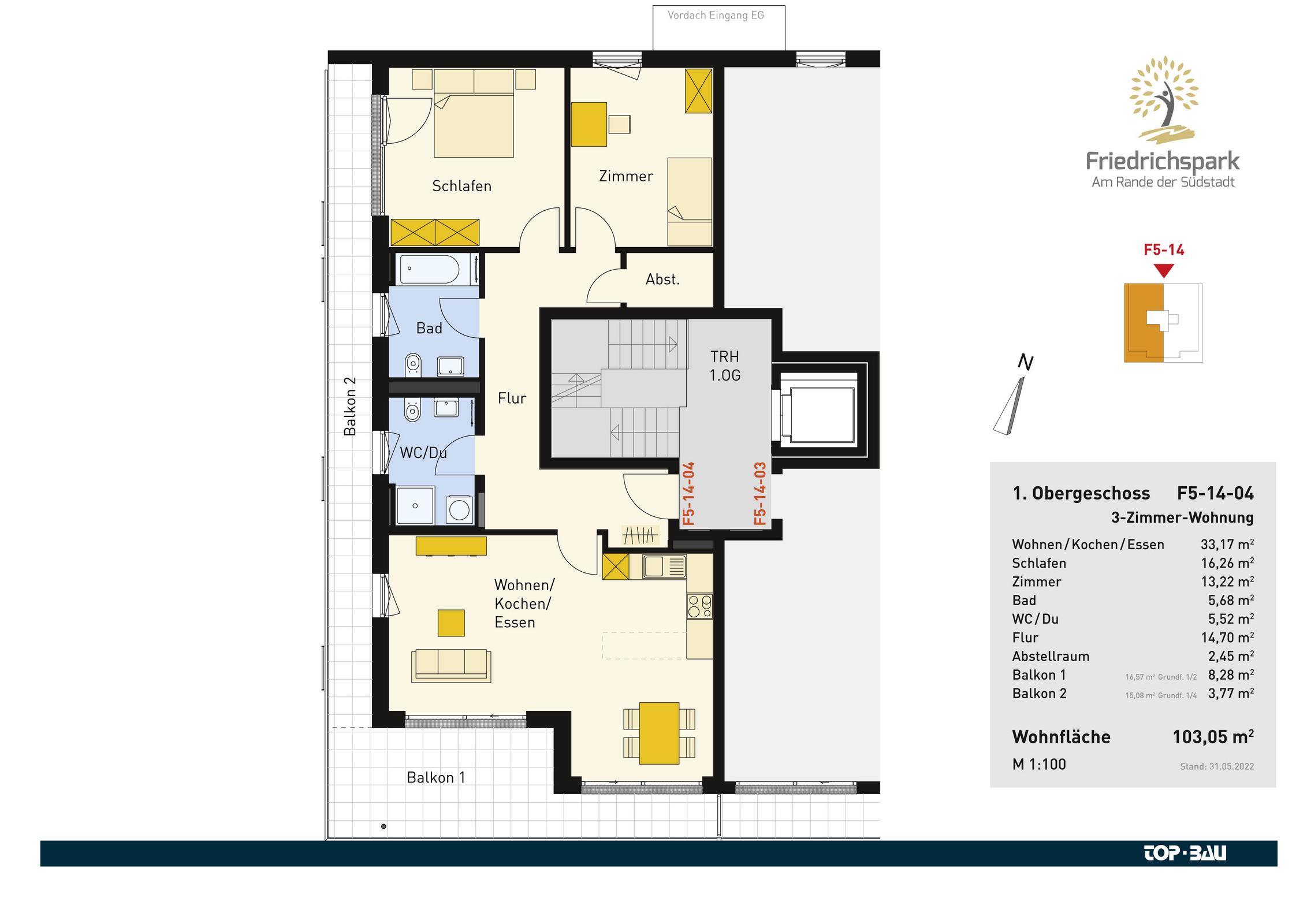 - Großer, sonniger Südwest-Balkon mit rund 32 m²