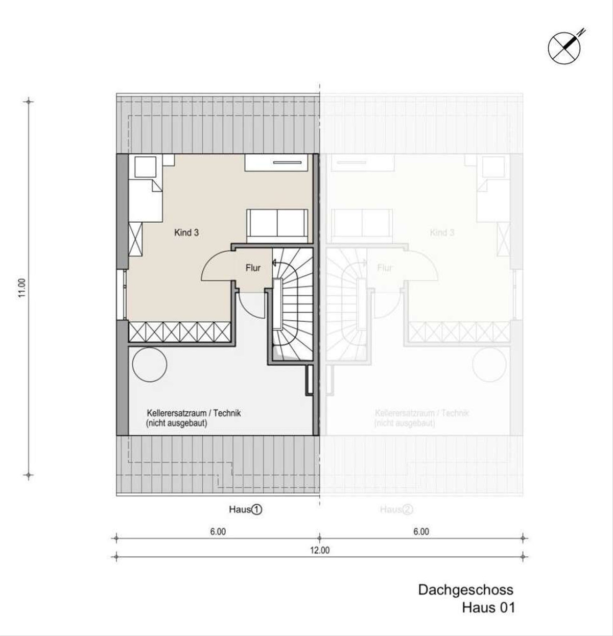 - Kellerersatzraum/Technikraum im Dachgeschoss
