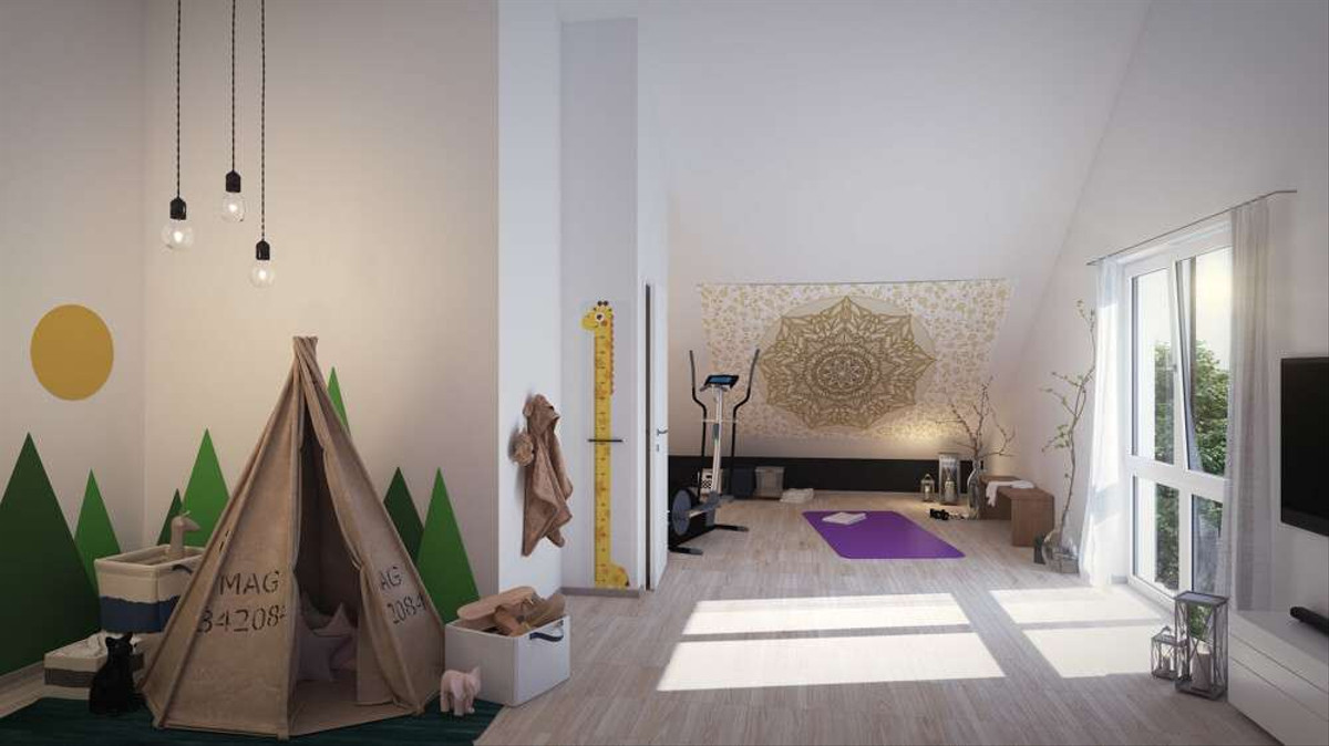 Hereinspaziert! Ihr neues Haus betreten Sie durch den überdachten Eingang und erreichen von dort aus das Erdgeschoss mit Diele, den Hauswirtschaftsraum, Gäste-WC, Esszimmer mit Küche und das großzügige Wohnzimmer, indem Ihre Familie zusammenkommt. Über dieses erreichen Sie die Terrasse und den großen Garten – der perfekte Platz für Grillabende mit Ihren Liebsten. In der oberen Etage befinden sich drei Schlafzimmer, zwei Kinderzimmer sowie das Elternschlafzimmer und ein großes Badezimmer. Eine Etage höher finden Sie das geräumige und ausgebaute Dachgeschoss, das einen idealen Rückzugsort für beispielsweise das Arbeiten von Zuhause bietet oder als drittes Kinderzimmer genutzt werden kann. Direkt gegenüber liegt der großzügige