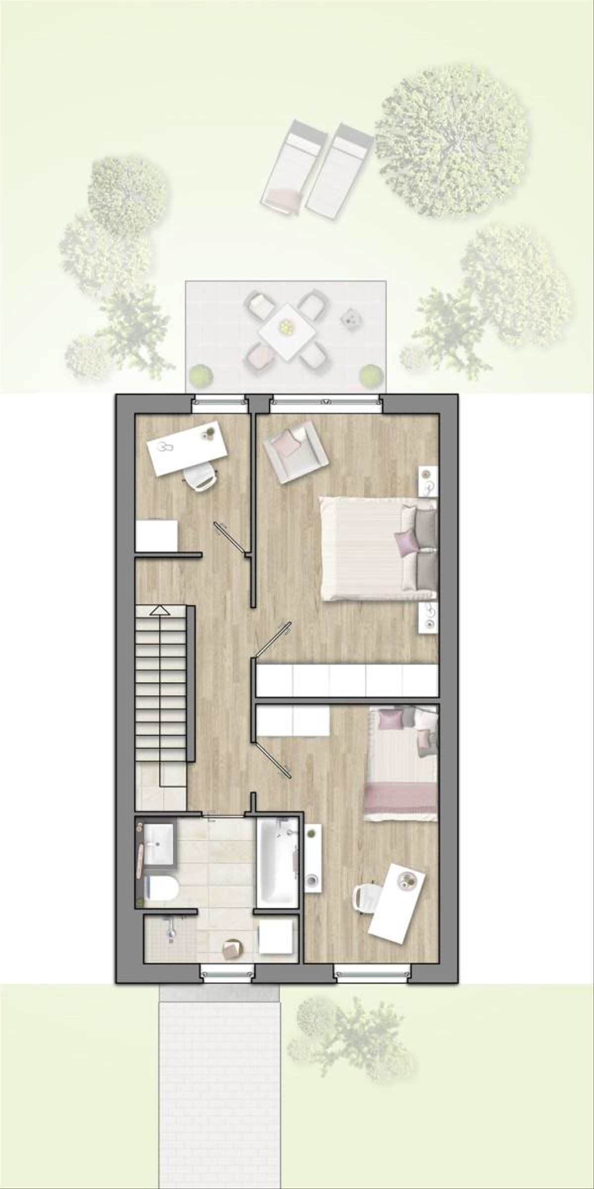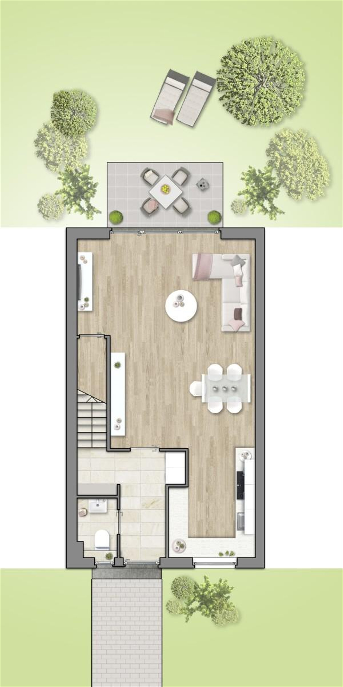 In der Gebgernstraße entstehen Einfamilienhäuser vom Haustyp L mit 129 m² Wohnfläche. Jedes Haus ist mit Fußbodenheizung und fortschrittlichen Smarthome-Funktionen ausgestattet. Das Besondere: Inmitten der einzigartigen Nahe-Landschaft mit ihren zahlreichen Weinhängen lebt man mit viel Natur vor der Tür. Es ist ein ideales Zuhause für alle Familien und Paare, die sich ein perfekt geschnittenes Haus mit eigenem Garten wünschen und zugleich Wert auf eine gute Nachbarschaft legen. Auch Kinder werden hier schnell Anschluss finden. Der nächste Spielplatz liegt nur 200 m von der Gebgernstraße entfernt.