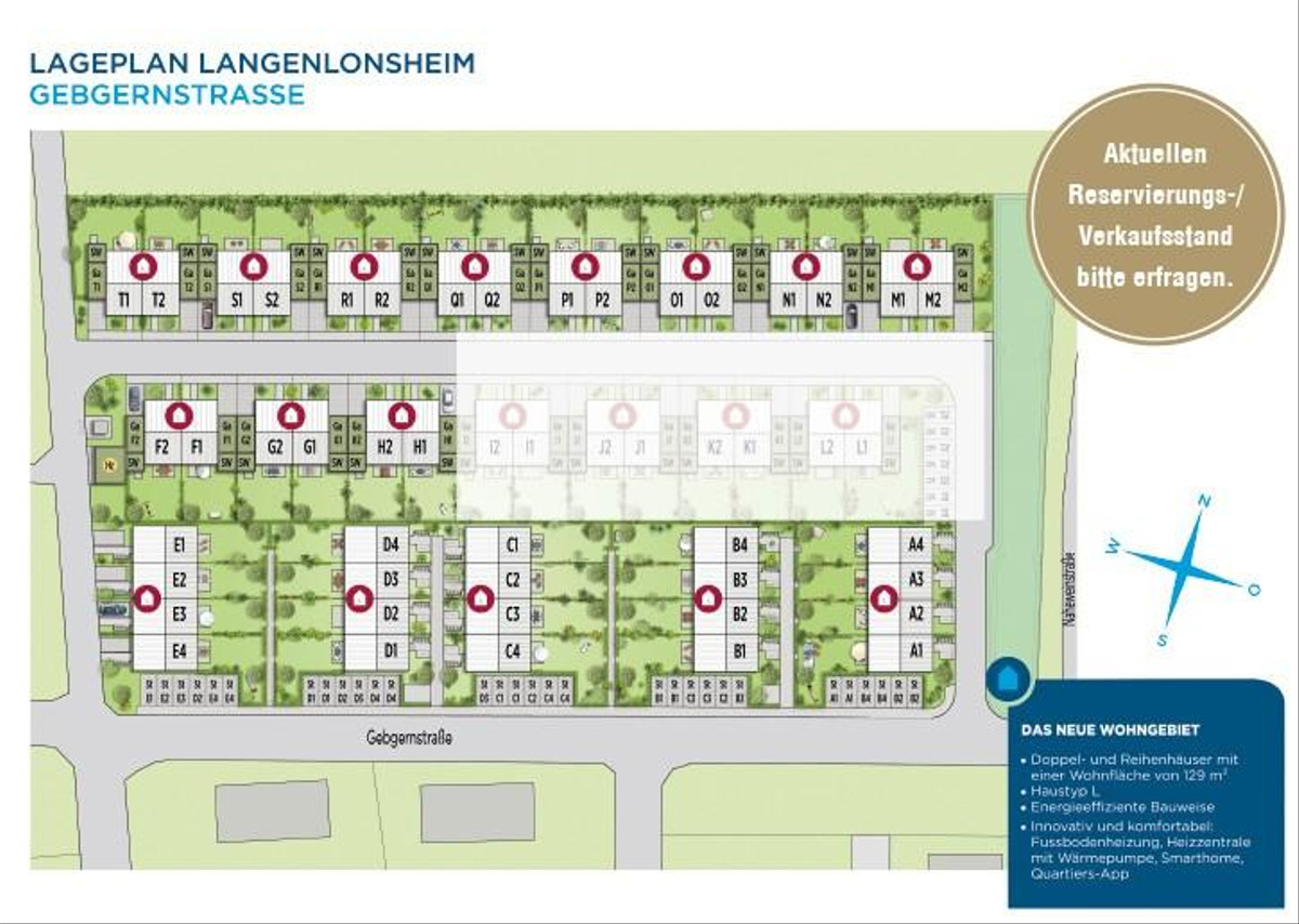 In Langenlonsheim entstehen im 1. Bauabschnitt 24 attraktive Reihen- und Doppelhäuser im energiesparsamen KfW-55-Effizienzhaus-Standard.