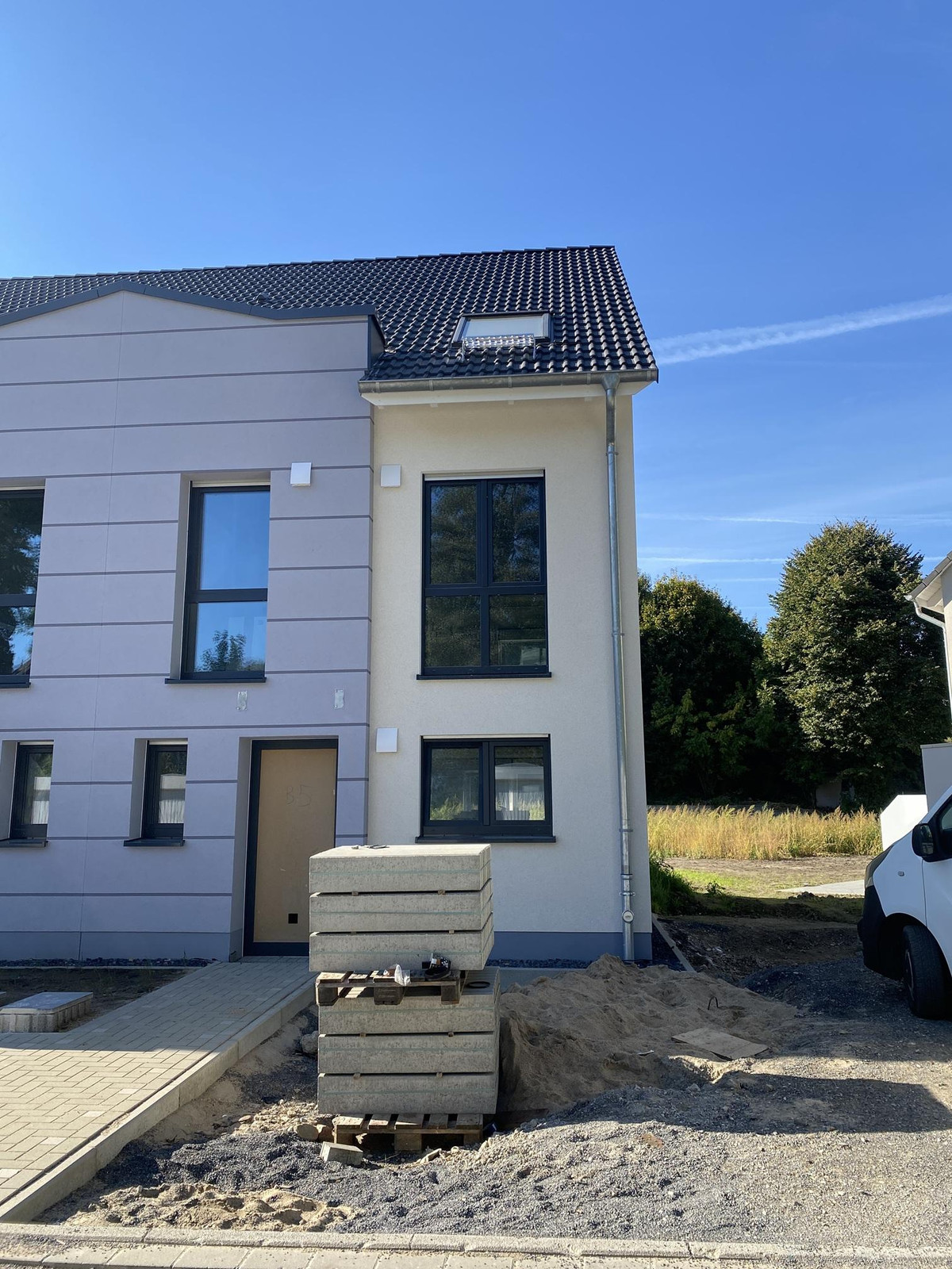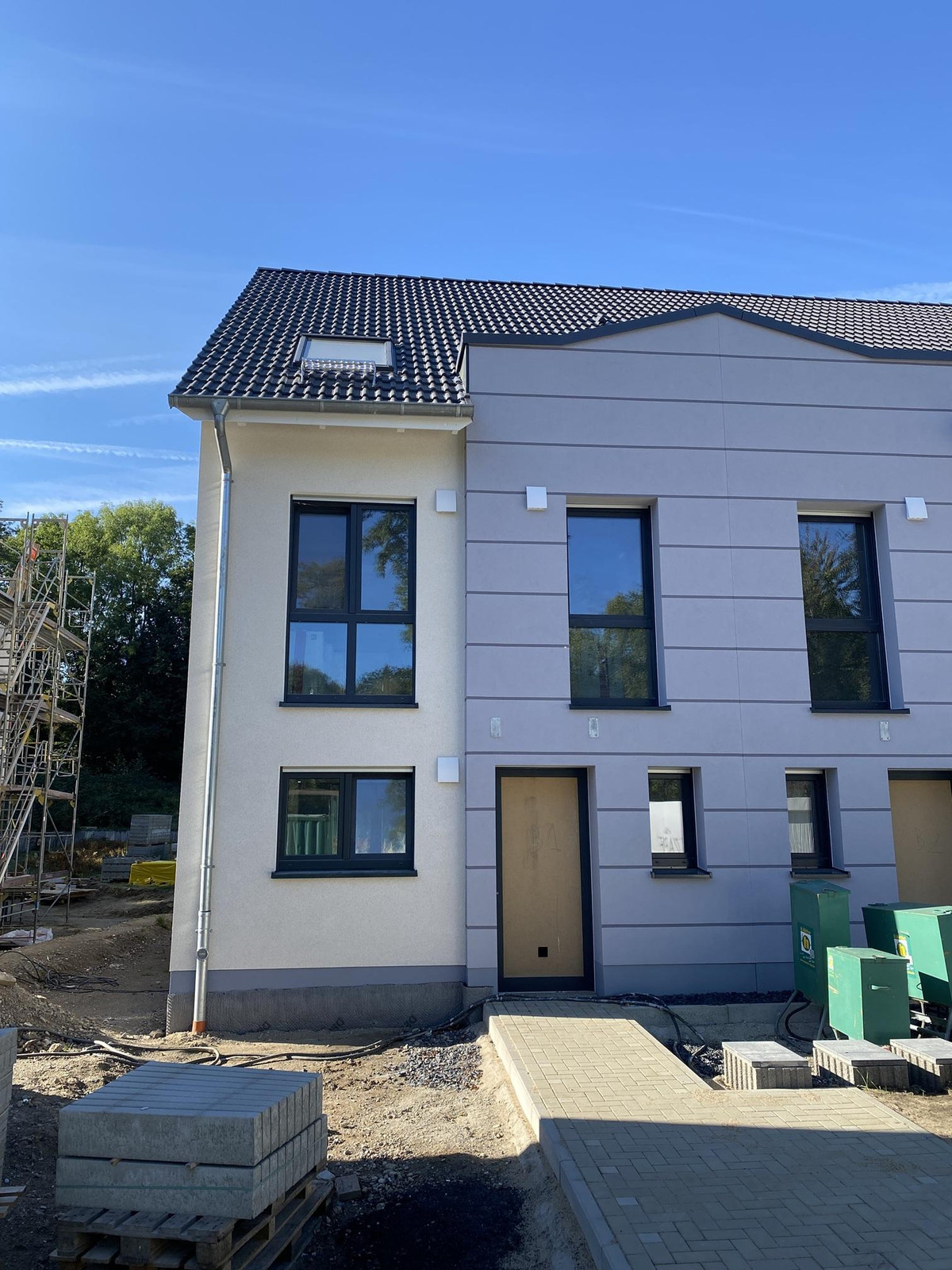 Hausreihe B steht bereits kurz vor dem Innenausbau. Hier wartet nur noch der passende Käufer – und damit die Möglichkeit, individuelle Wünsche in die Gestaltung einfließen zu lassen. Ob bei der Planung des Badezimmers, der Auswahl der Fliesen oder der Positionierung von Steckdosen – Sie entscheiden mit!