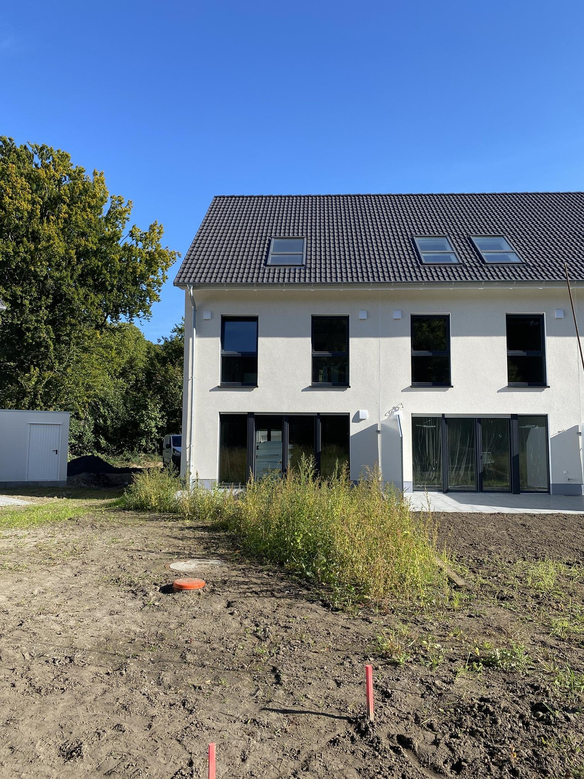 Hausreihe A befindet sich aktuell im Rohbau. Aus Sicherheitsgründen sind Besichtigungen vor Ort nicht immer realisierbar – aber kein Problem! Wer sich dennoch ein Bild von der Bauqualität und dem Raumgefühl machen möchte, kann gerne ein Haus der Hausreihe B besichtigen.