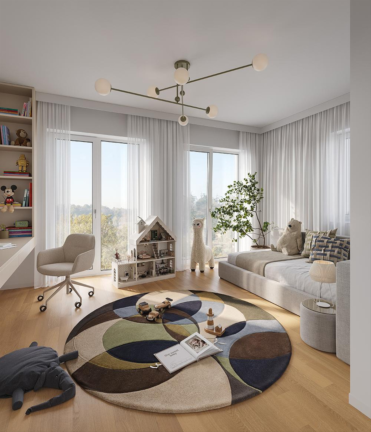 Ob Teenager oder Kleinkind – die 5 Häuser bieten perfekt gestaltete Kinderzimmer für jede Altersgruppe. Jedes Zimmer kann individuell auf die Bedürfnisse der Kinder abgestimmt werden.