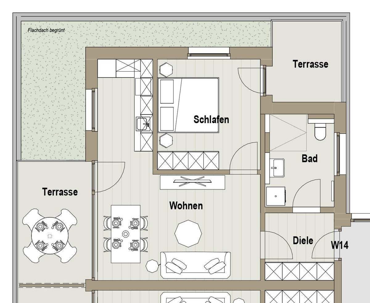 - Alle Wohnungen barrierefrei nach DIN 18040