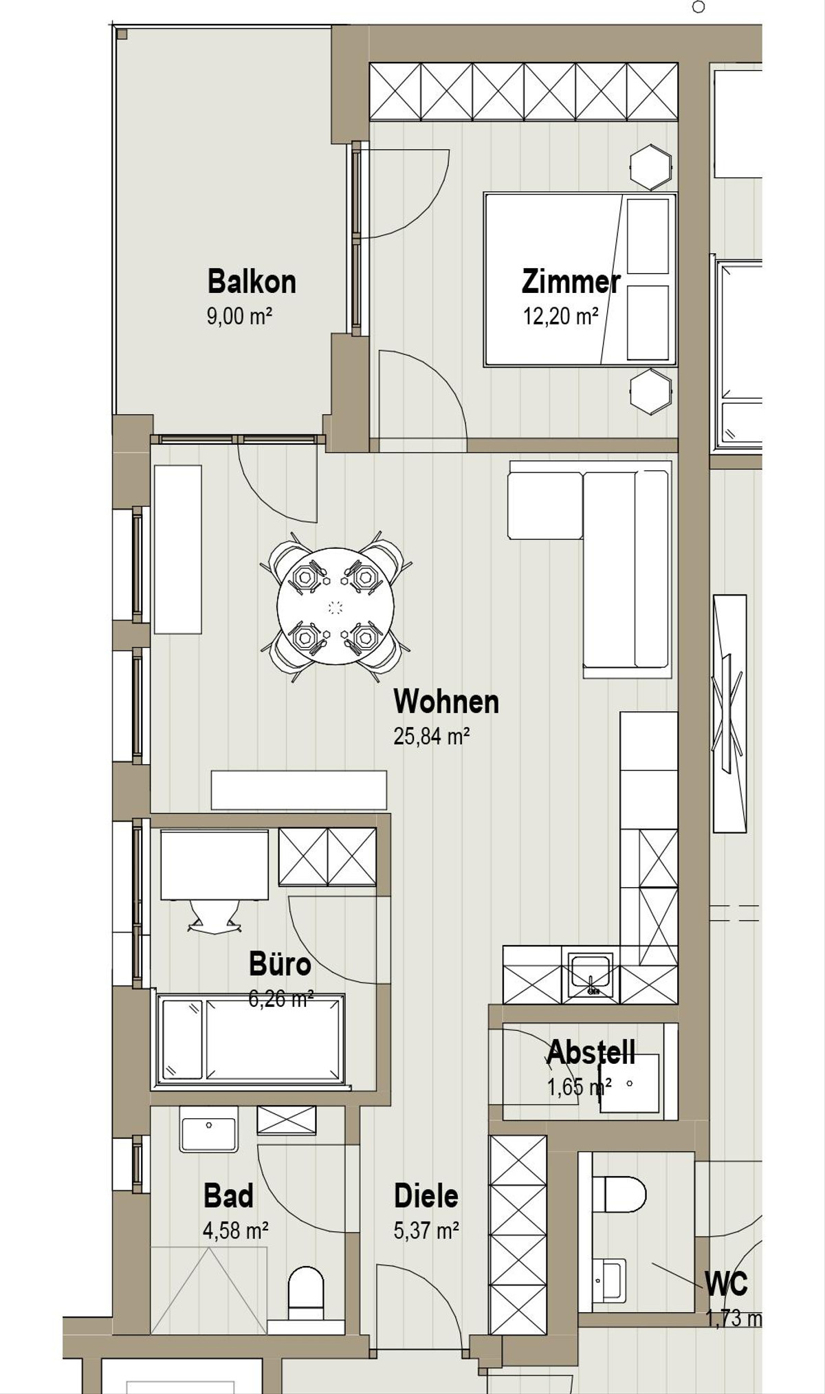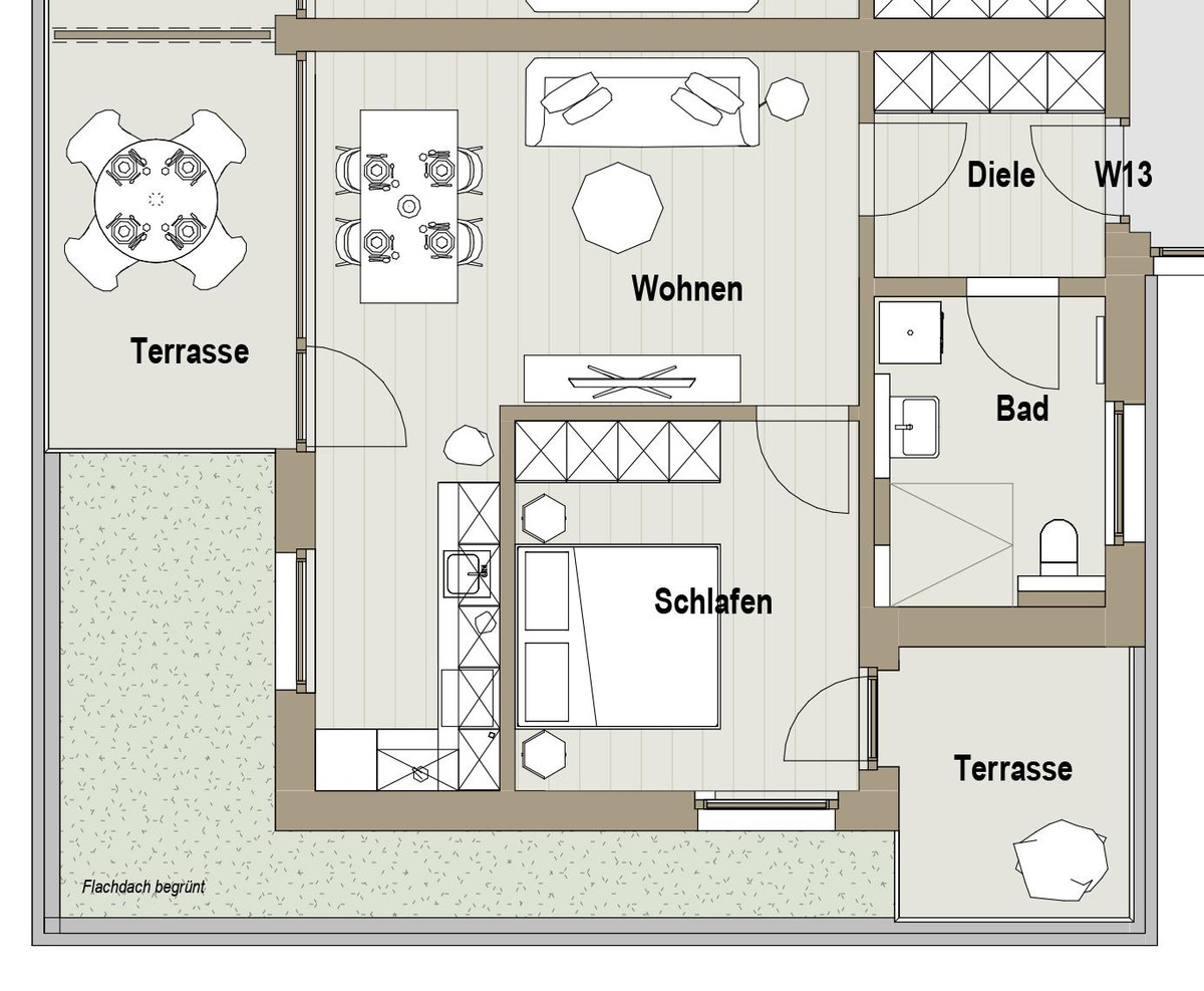 - Flächeneffiziente Grundrisse, Vermeidung langer Flure und unnötiger Verkehrsflächen