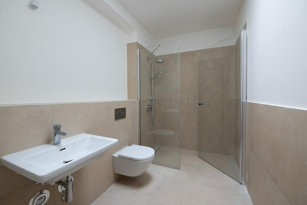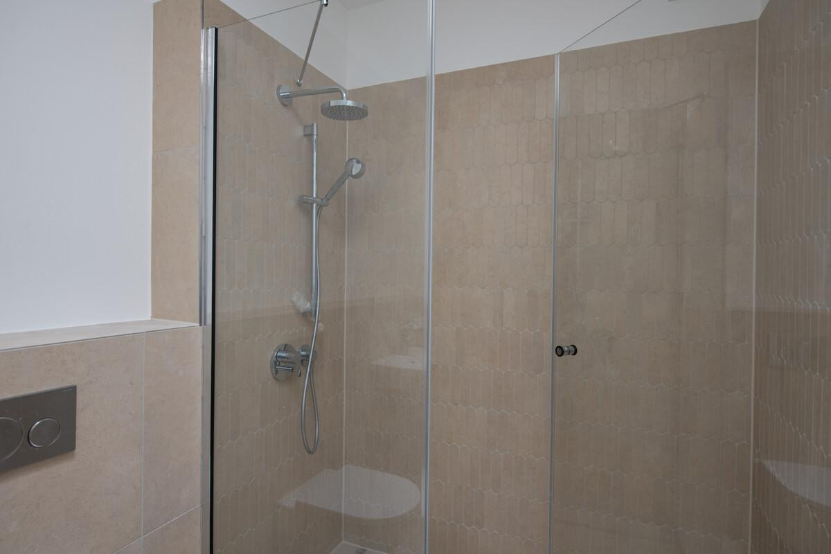 Im großzügige Badezimmer erwarten Sie hochwertige Markenfabrikate, eine Rainshower-Dusche und eine Badewanne, die Wellness pur verspricht. Ein Aufzug bringt Sie bequem bis vor Ihre Wohnungstür, außerdem verfügt das Penthouse über einen Tiefgaragenstellplatz.