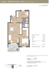 Auf insgesamt 6,6 Hektar bietet joseph eine attraktive Mischung zwischen viel Wohnen und wenig Gewerbe, Nachhaltigkeit und Wohnkomfort. Das Wohnquartier mit ca. 500 Eigentumswohnungen liegt angrenzend zum Landschaftspark und bietet viel Freiraum und Lebensqualität. Mit ein bis fünf Zimmern sind die Eigentumswohnungen sowohl zur Eigennutzung als auch zur Kapitalanlage geeignet.