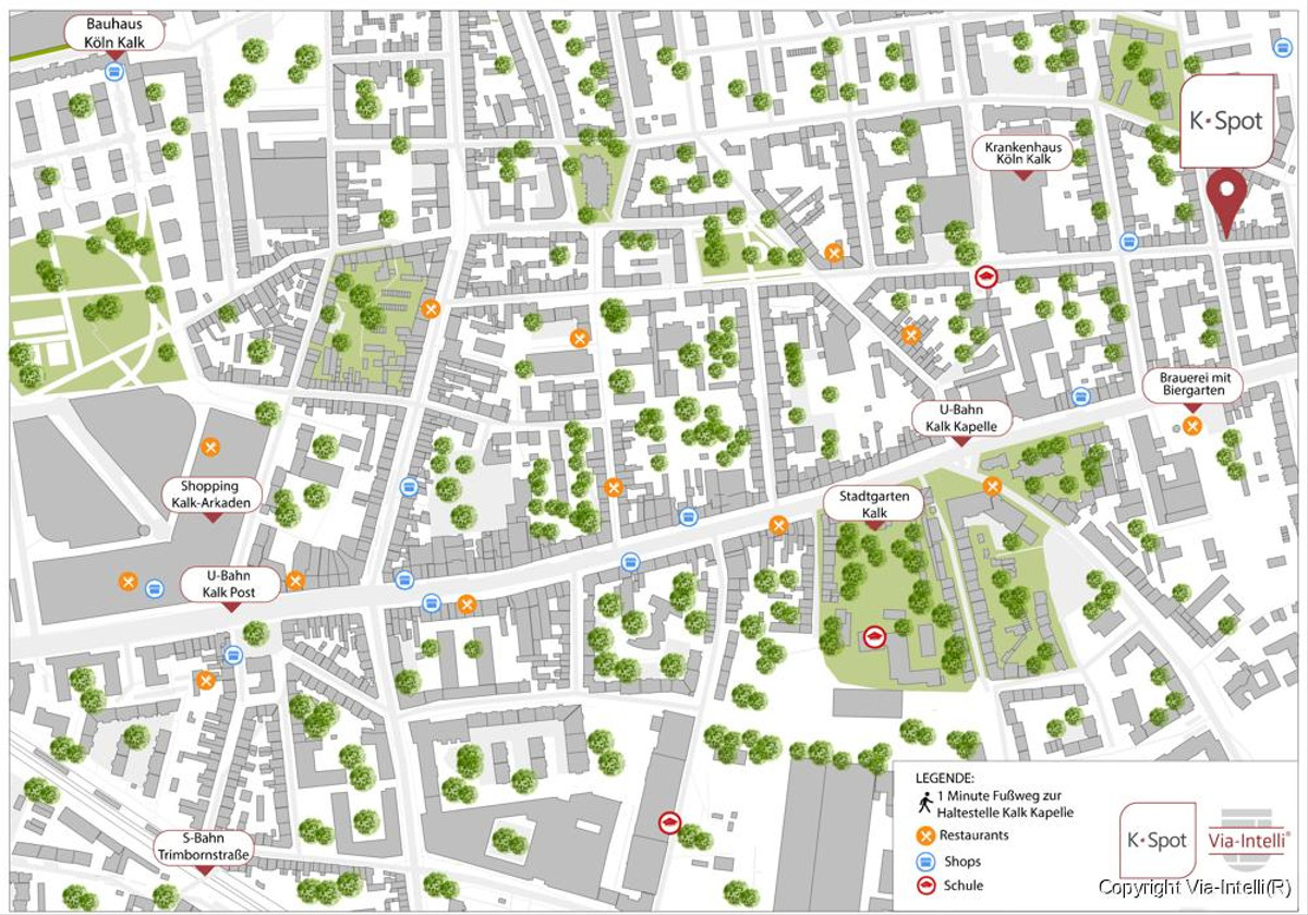Für Freizeit und Erholung sorgen der nahe Stadtgarten Kalk, der Bürgerpark sowie die traditionsreiche Sünner-Brauerei mit gemütlichem Biergarten.