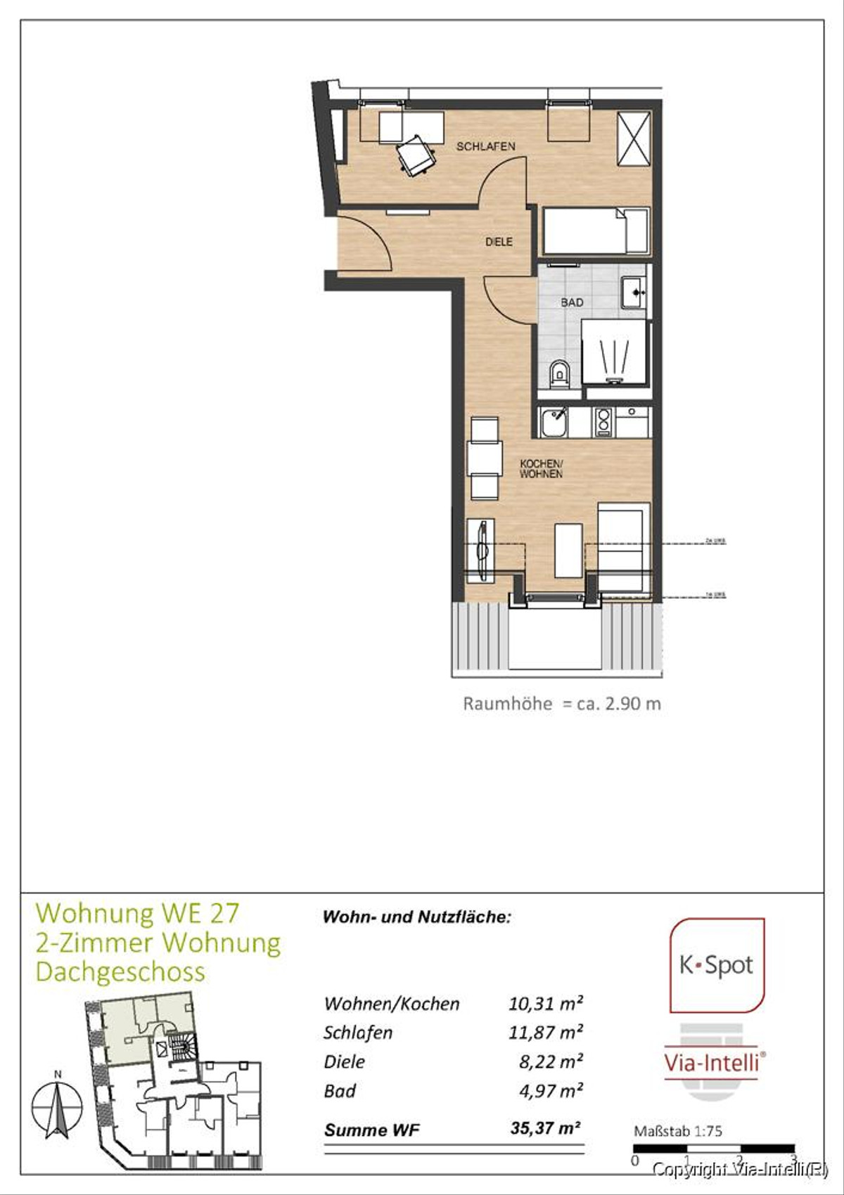 Inmitten eines gewachsenen Gründerzeitviertels, fußläufig von Köln-Deutz, entsteht mit K-Spot ein modernes, fünfgeschossiges Apartmenthaus - dank Aufzug sind alle Etagen vom Keller bis ins Dachgeschoss komfortabel und barrierefrei erreichbar. Das im Dachgeschoss gelegene 2-Zimmer-Apartment, mit einer großzügigen Raumhöhe von ca. 2,7 m, wird optional vollmöbliert inklusive Einbauküche verkauft und ist bei Übergabe einzugsfertig – sei es zur Eigennutzung oder als unkomplizierte Kapitalanlage. Gerne unterstützen wir Sie bei der Vermietung mit unserem inkludierten Erstvermietungsservice.