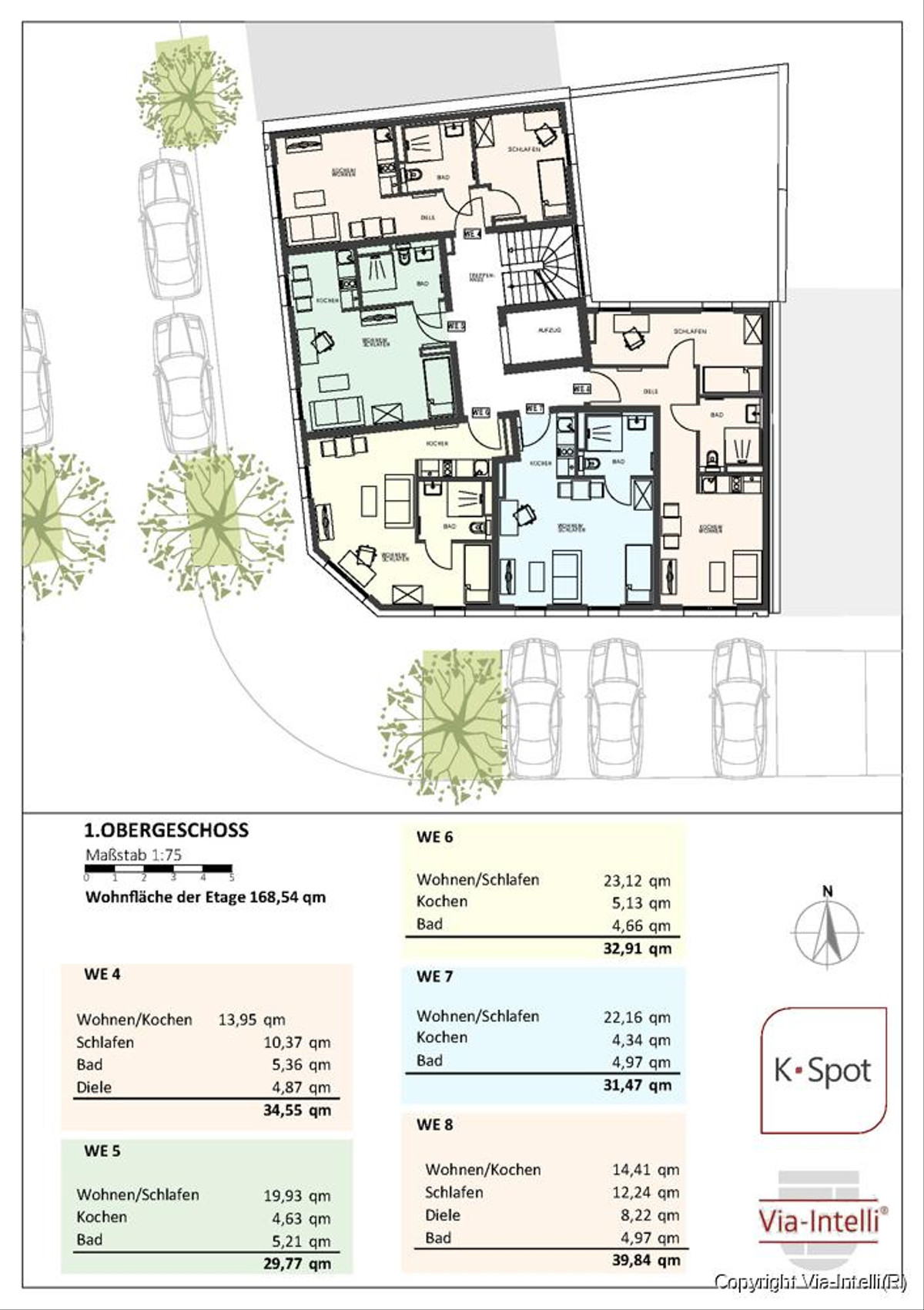 Inmitten eines gewachsenen Gründerzeitviertels, fußläufig von Deutz, entsteht mit „K-Spot“ ein modernes, fünfgeschossiges Apartmenthaus – dank Aufzug sind alle Etagen vom Keller bis ins Dachgeschoss komfortabel und barrierefrei erreichbar. Das hier angebotene Investorenportfolio umfasst die gesamte erste Etage mit insgesamt fünf 1- bis 2-Zimmer-Apartments - optional mit Vollmöblierung und Einbauküchen. Die vermietbare Fläche der Wohnungen WE 4, WE 5, WE 6, WE 7 und WE 8 beläuft sich auf ca. 169 m², die jährlichen Soll-Mieteinnahmen auf ca. 52.164 €. Alle Wohnungen werden bei Übergabe einzugsfertig übergeben – sei es für die Eigennutzung oder als unkomplizierte Kapitalanlage. Zusätzlich profitieren Sie von unserem im Kaufpreis inkludierten Erstvermietungsservice an bonitätsgeprüfte Mieter.